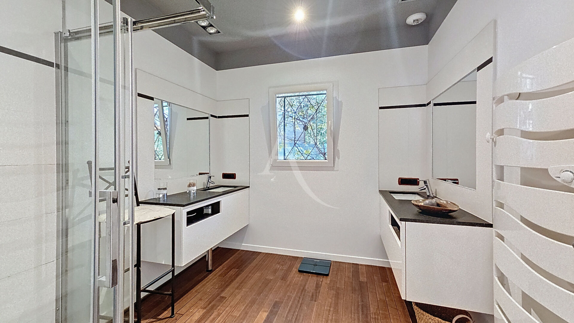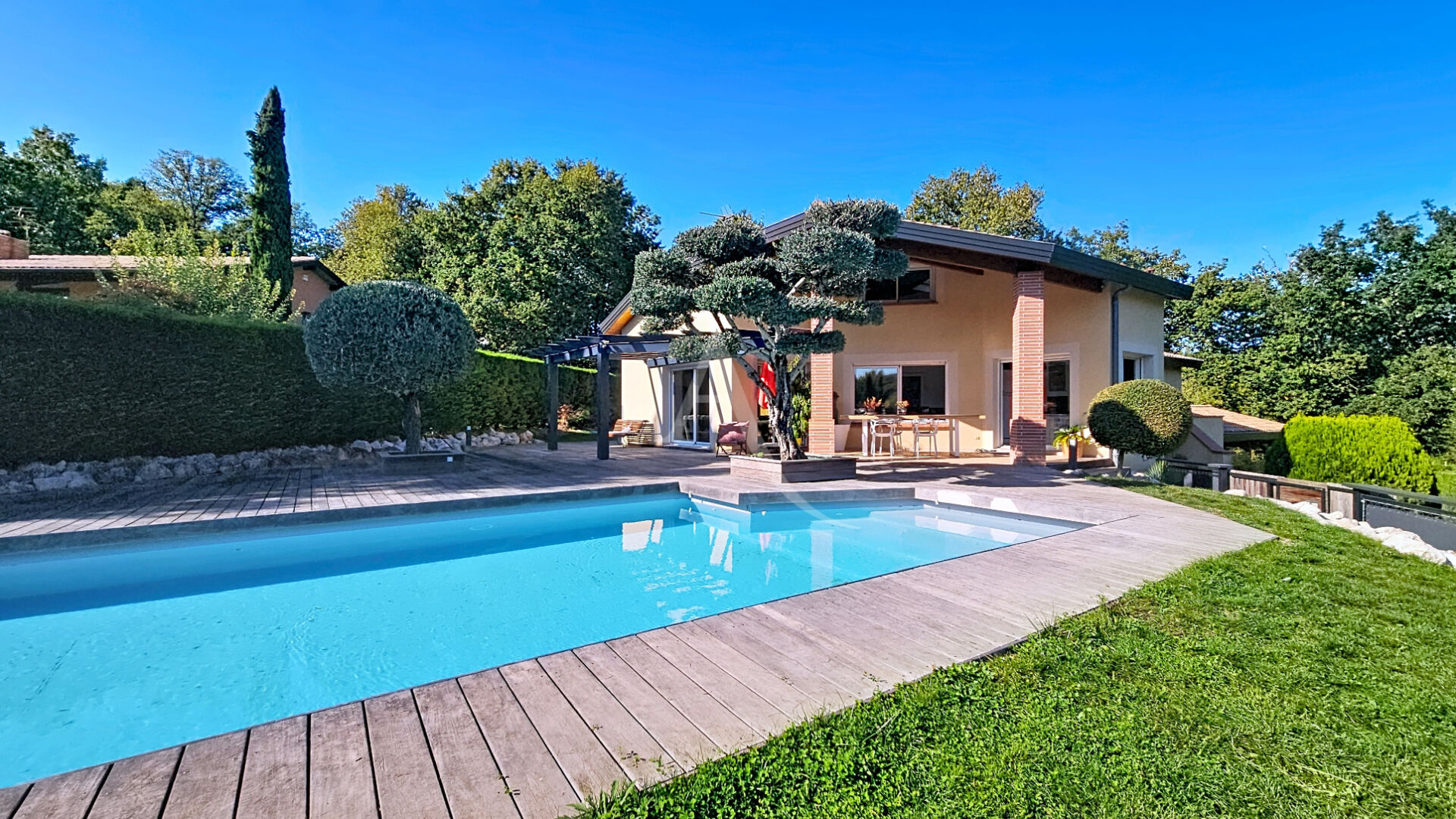Piscine, 120m2 de terrasses en ipé, sous-sol total et carport sont prévus pour 6 voitures, terrain de 2000m2 arboré.