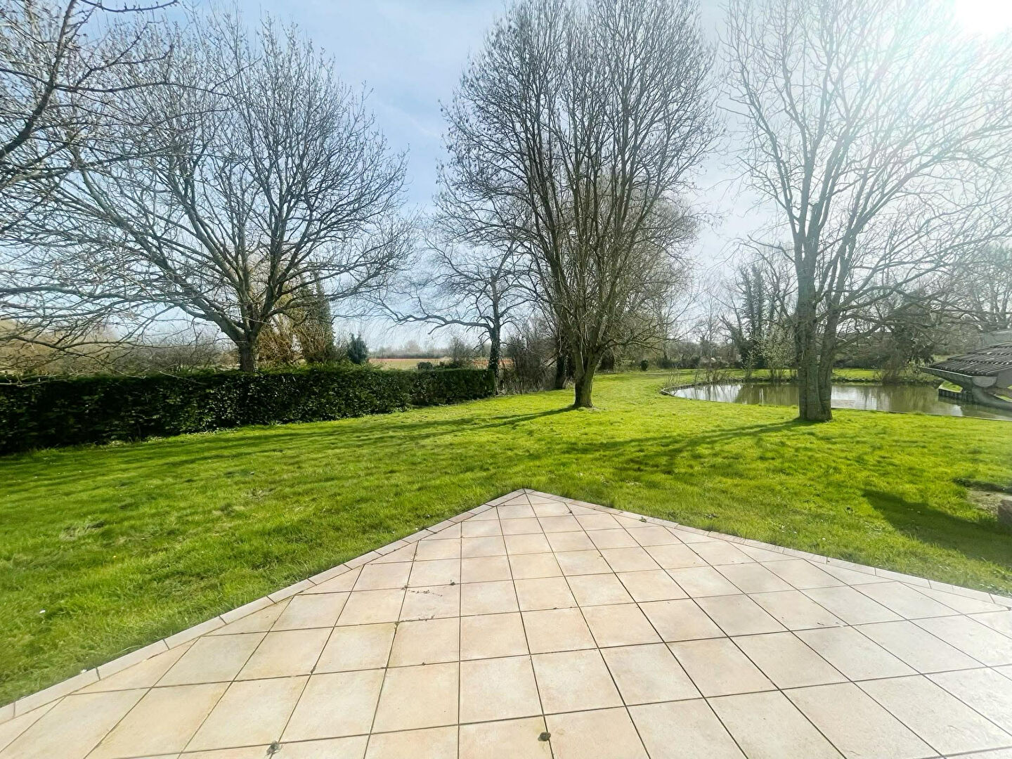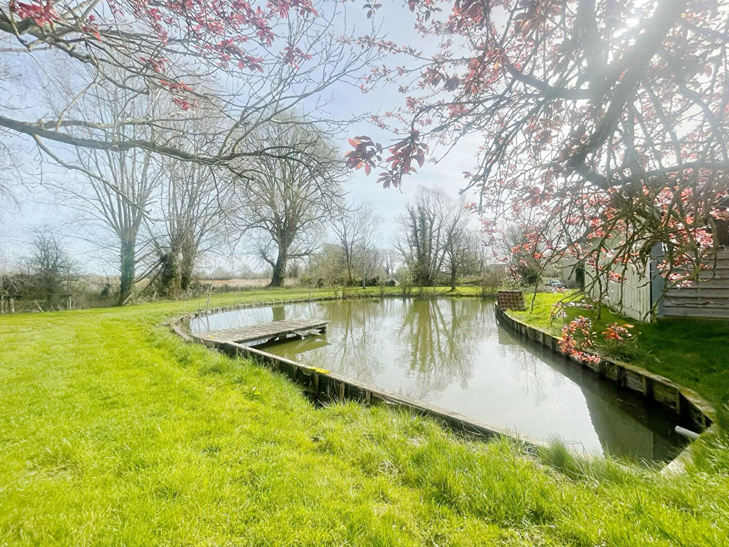 En plus de la maison, un jardin avec étang.