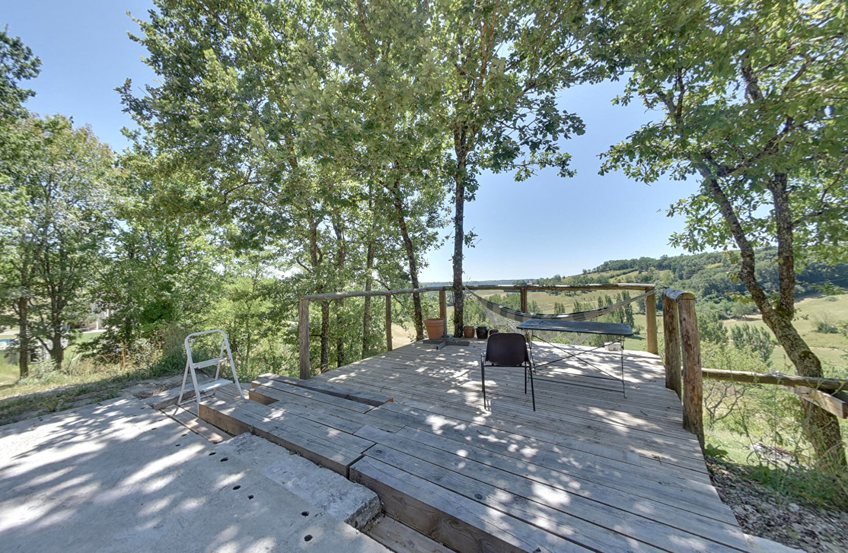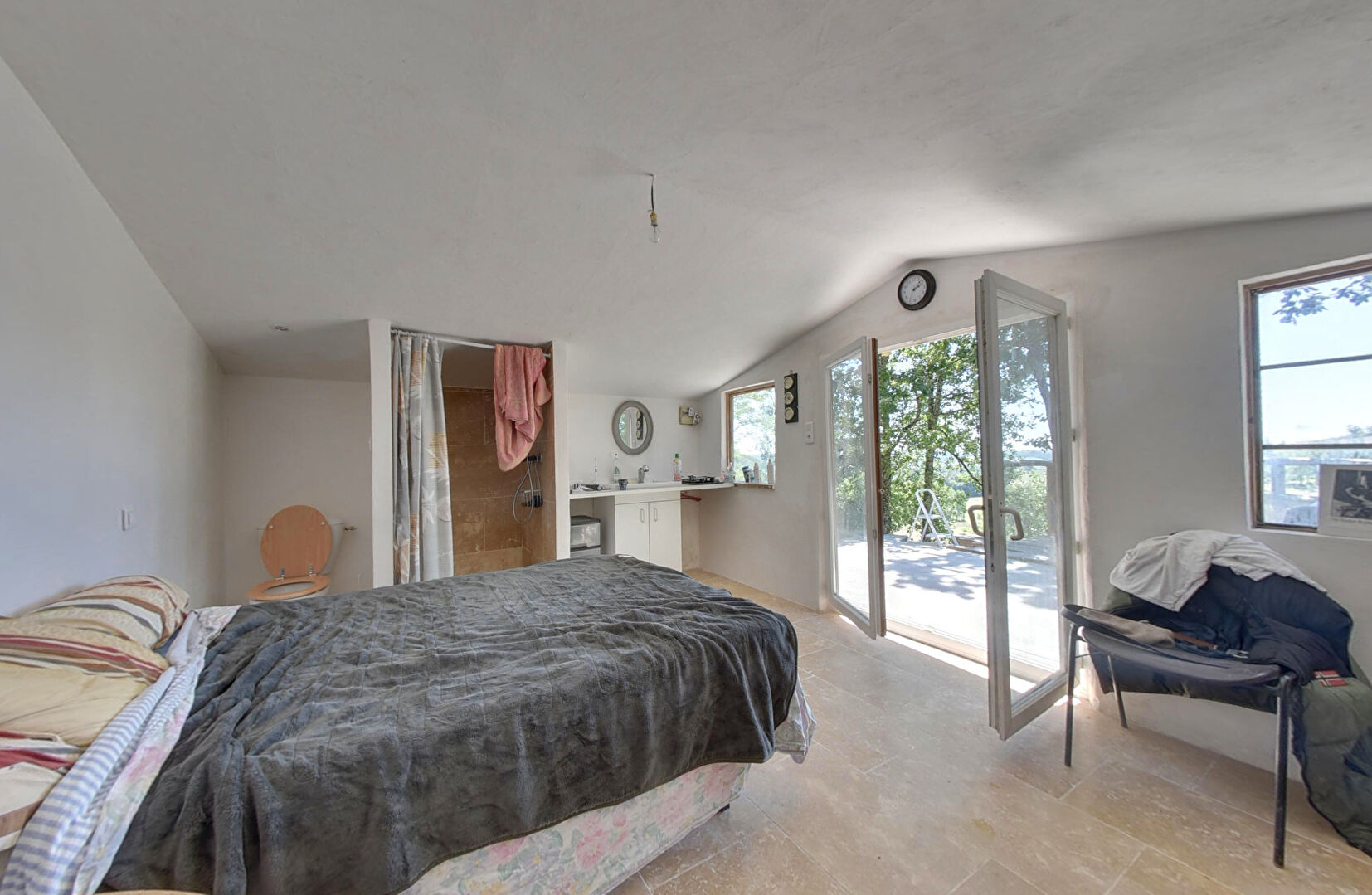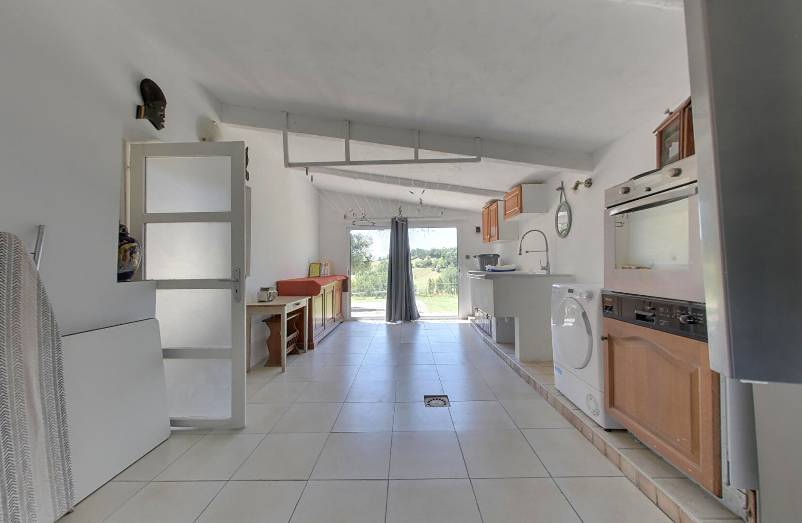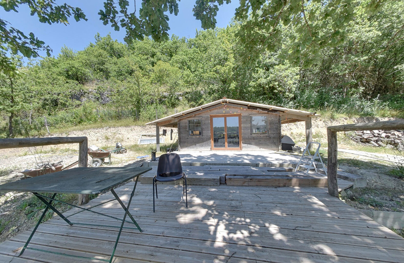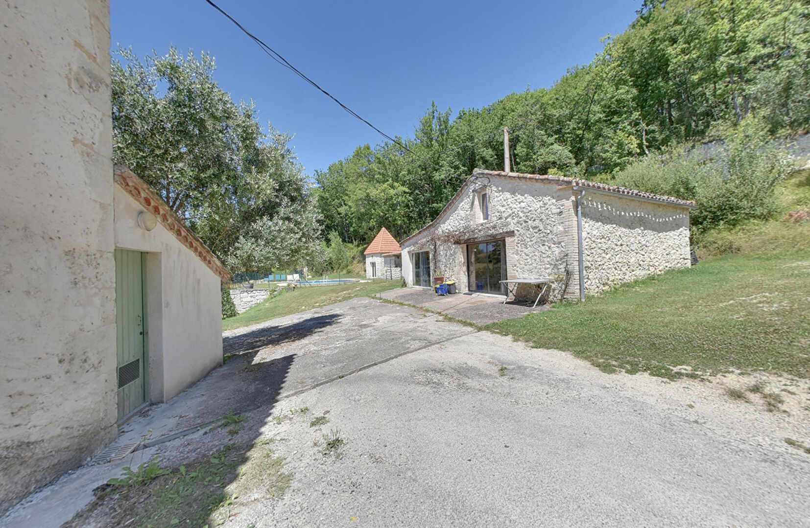 Sur le terrain de 2,5 hectares se trouve également une dépendance aménagée, composée d'une grande pièce de vie, d'une cuisine séparée et d'une douche, le tout à proximité de la partie piscine.