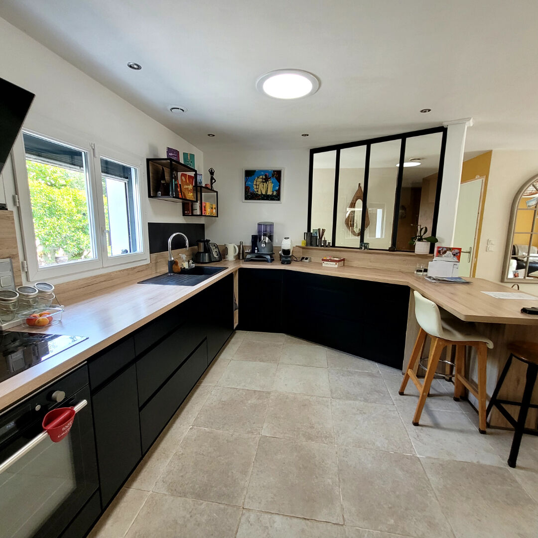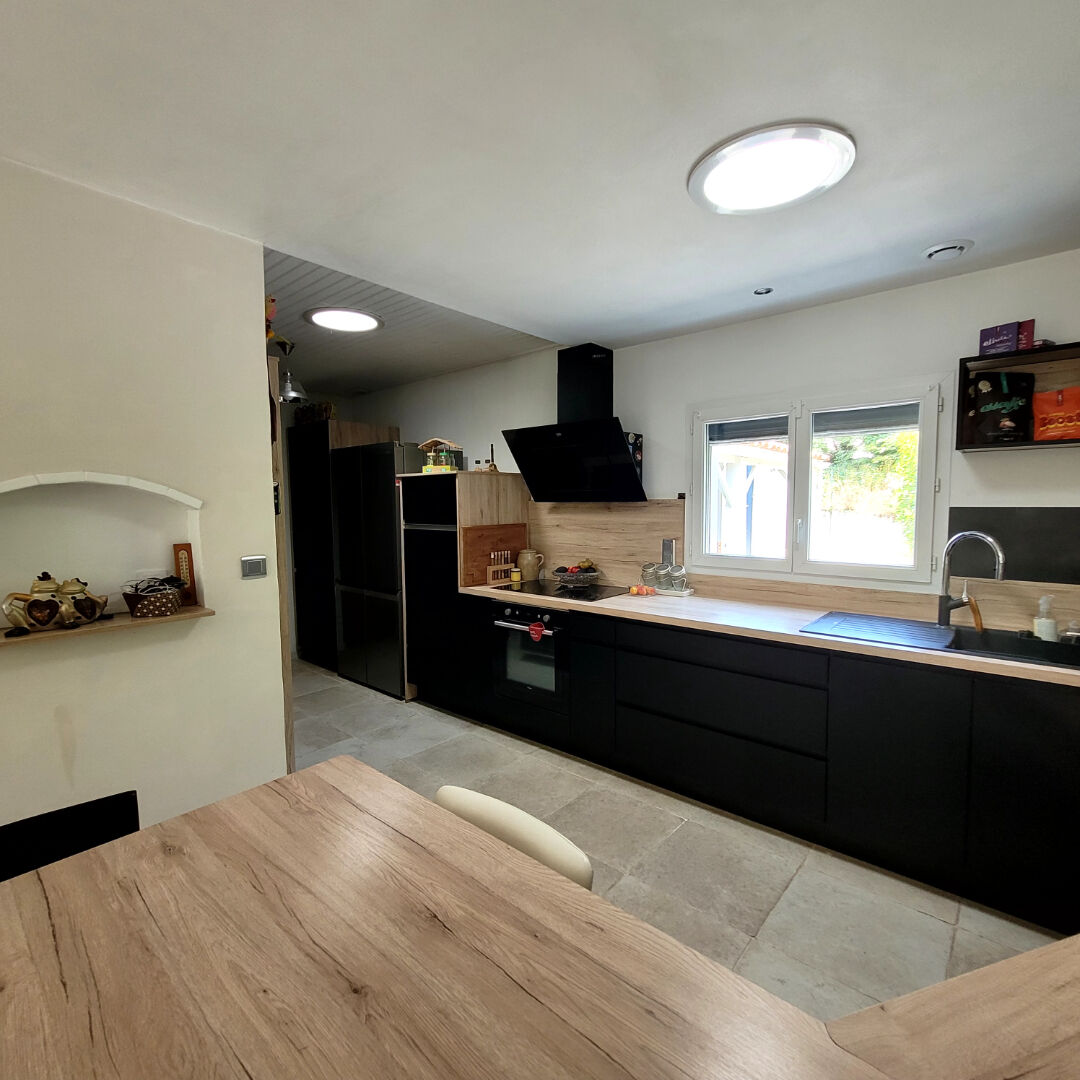 La maison comprend une grande pièce de vie avec cuisine équipée, une salle à manger donnant sur la terrasse équipée d'une pergola bioclimatique orientée plein sud, une suite parentale, 2 chambres, une grande salle de bains, un dressing et 2 WC.