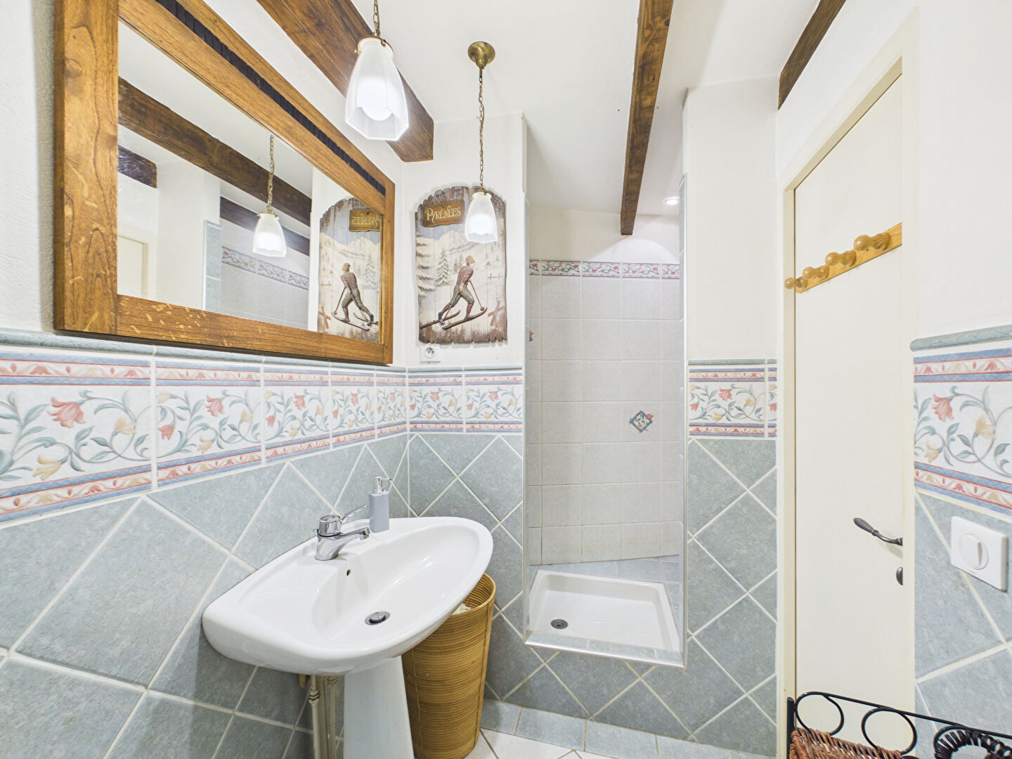 À l'étage, vous découvrirez une chambre spacieuse de 17 m² bénéficiant d'une belle hauteur sous plafond, ainsi qu'une salle d'eau attenante avec WC.
