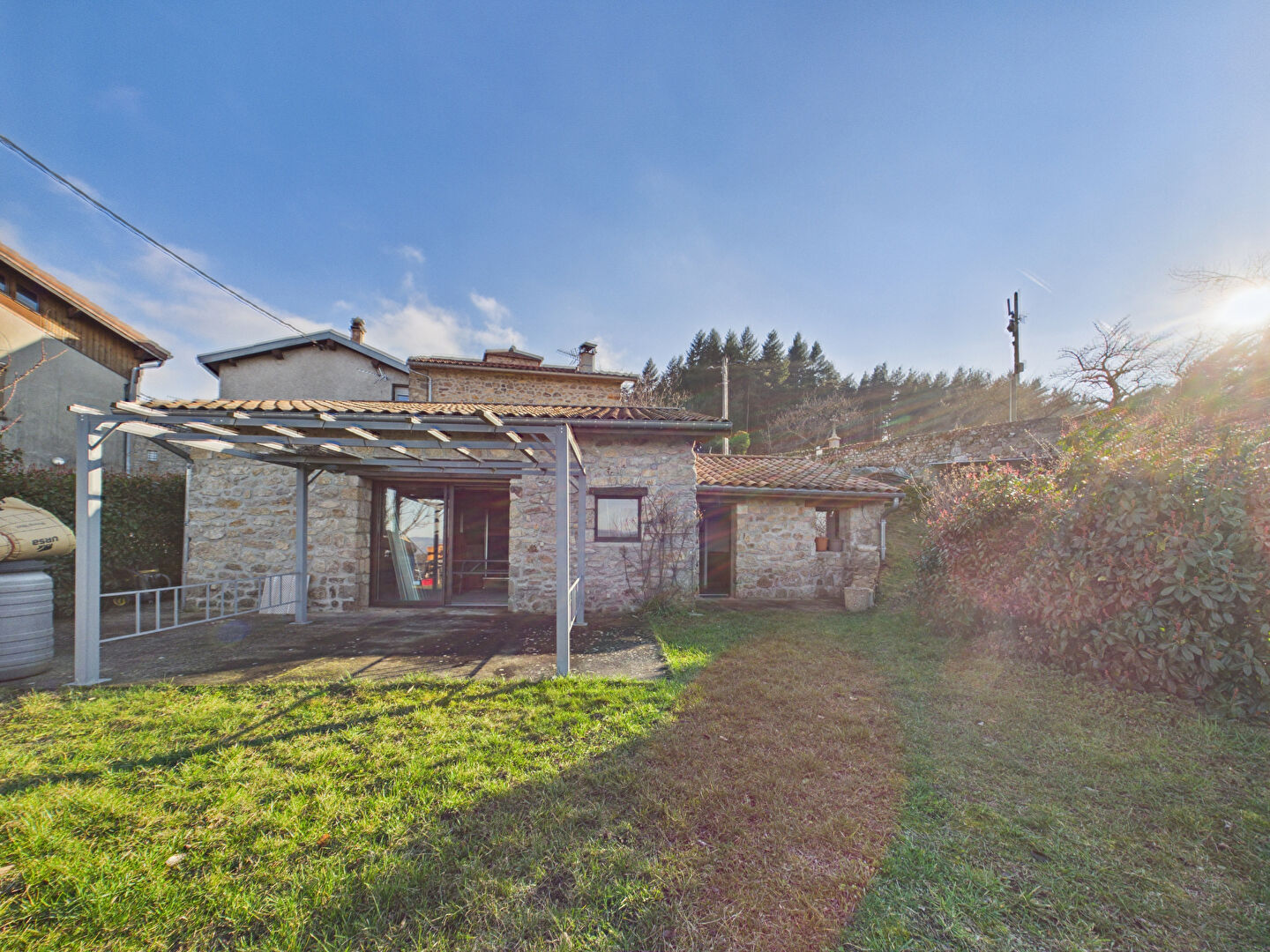Situé sur la commune de Saint-Basile, cet ensemble de deux maisons en pierre offre un cadre de vie paisible, avec une agréable vue sur les montagnes ardéchoises.