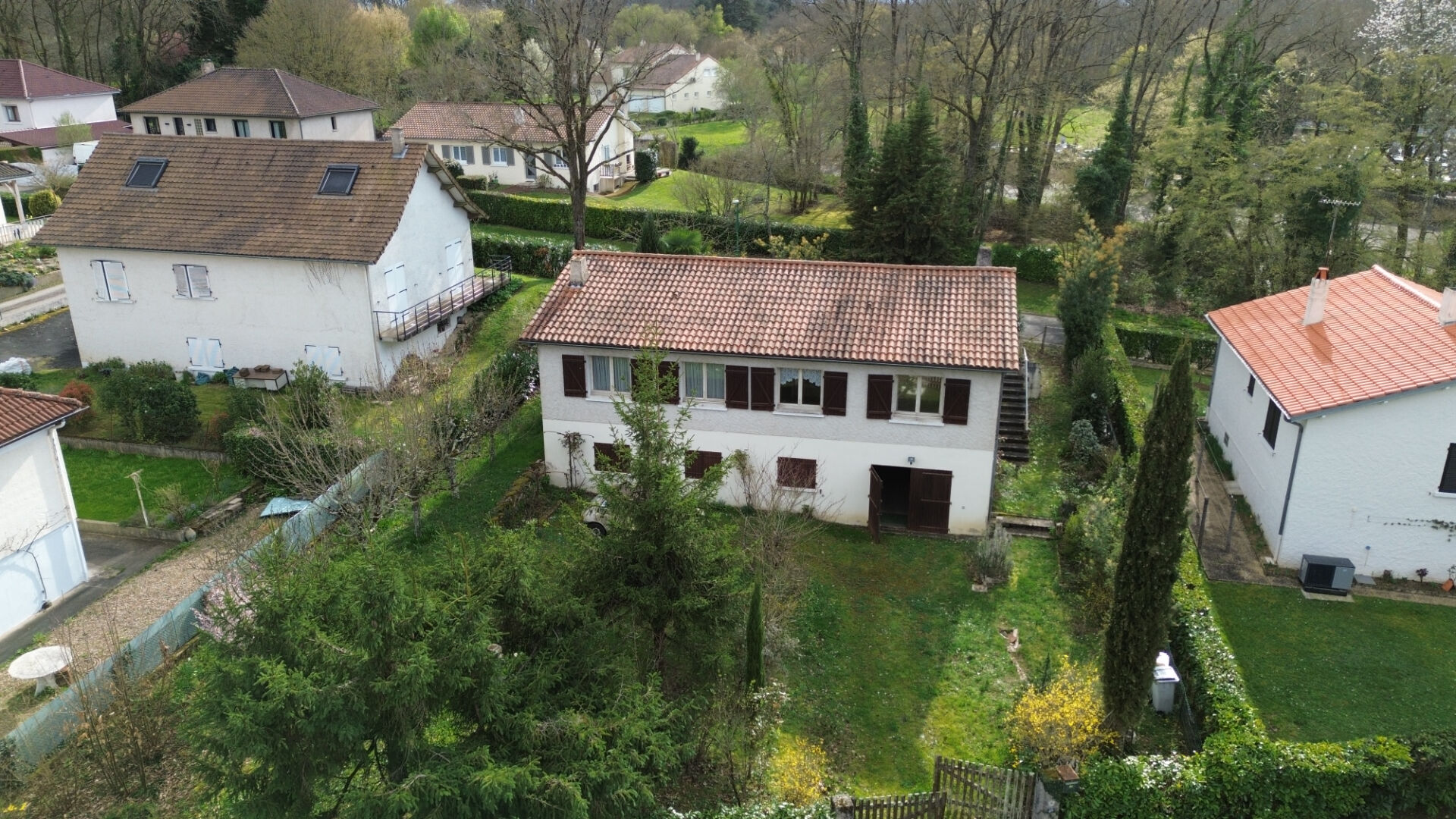À l'extérieur, la maison est implantée sur un jardin clos et arboré, propice aux moments de détente et à la vie de famille, dans un cadre calme et agréable.
