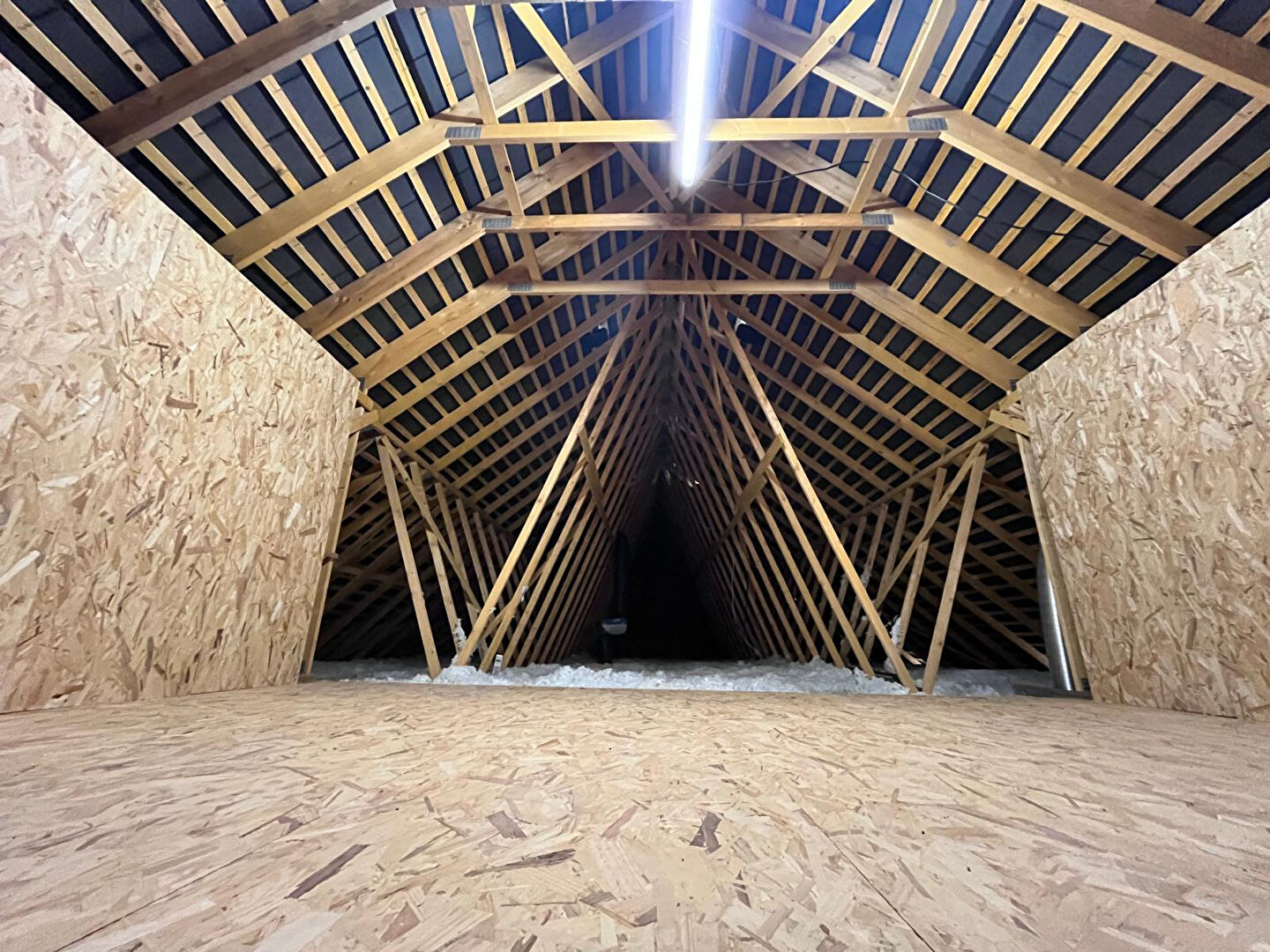 Un garage attenant permet un stationnement sécurisé et offre un accès à un grenier situé au-dessus, idéal pour le stockage ou un futur aménagement selon vos besoins.