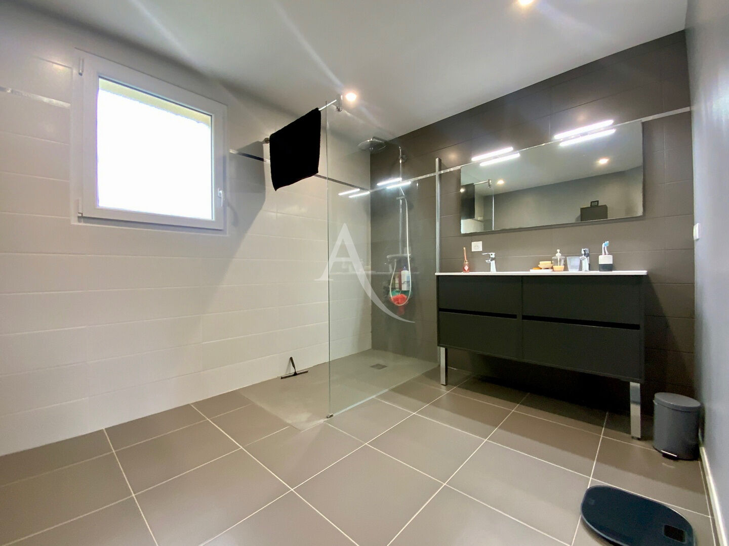 La salle d'eau moderne et fonctionnelle, dispose d'une douche à l'italienne.