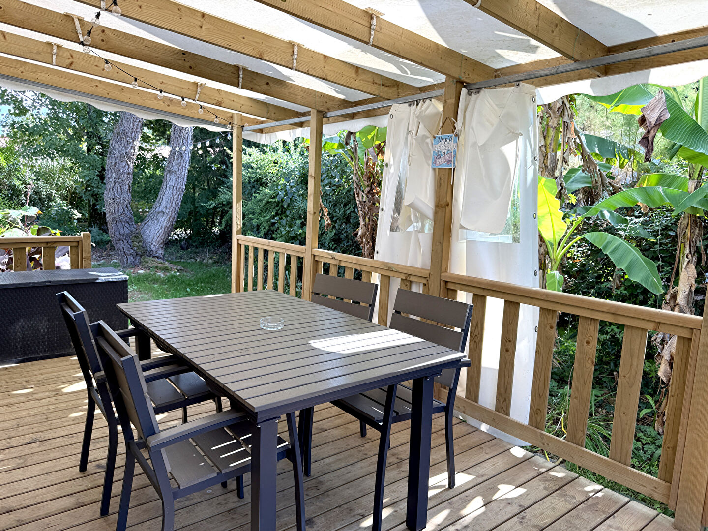 Seulement chez l'Adresse !! A 15 minutes des plages, dans le parc résidentiel de loisir de 151 lots " Le Domaine des Lotus" à Saint-Cyr-en-Talmondais : parcelle de terrain clos de 208 m² avec mobilhome récent comprenant : une pièce de vie avec cuisine ouverte aménagée et équipée, deux chambres, une salle d'eau, un W.C. Terrasse couverte 6x3 mètres avec bâches amovibles. PRL avec parc paysagé, piscine et étangs, terrain de pétanques et jeux pour enfants.. Charges annuelles 820 euros. DPE non requis. Plus d'informations : 0648443569 Corentin Papon (EI) N°RSAC 798880746 La Roche-sur-Yon. - Prix : 128600 euros - Réf. 1217.