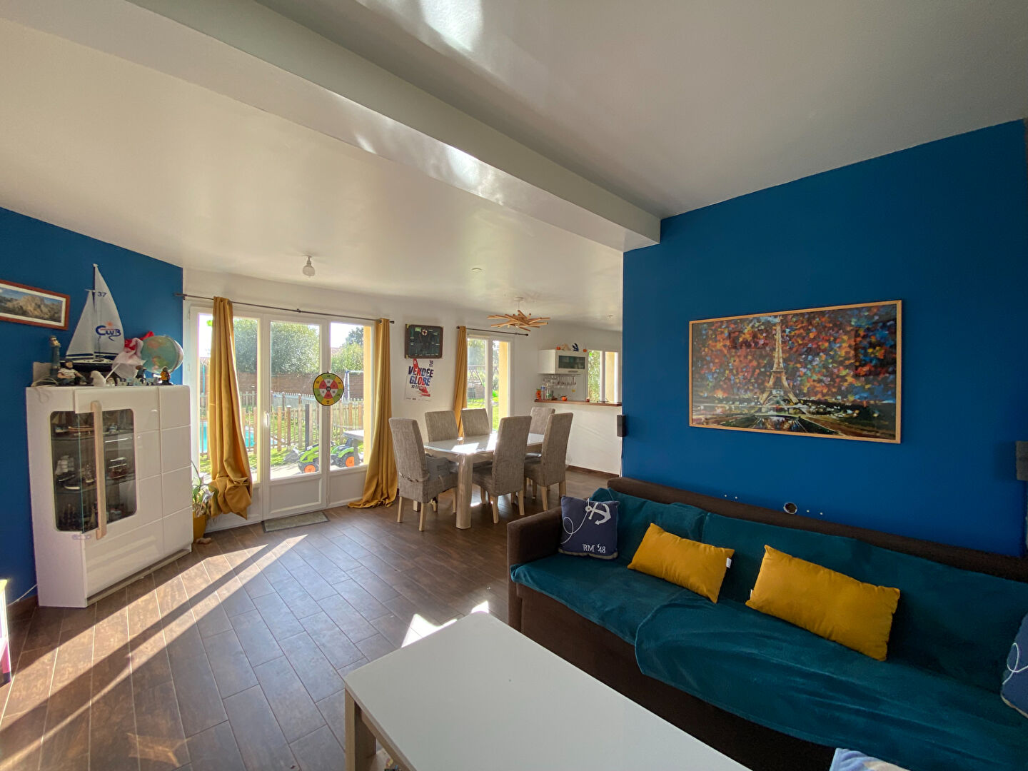 Dès l'entrée, vous serez séduits par une spacieuse et lumineuse pièce de vie, composée d'un salon, d'une salle à manger et d'une cuisine aménagée et équipée, le tout ouvert sur le jardin et la piscine, créant un espace convivial et chaleureux.
