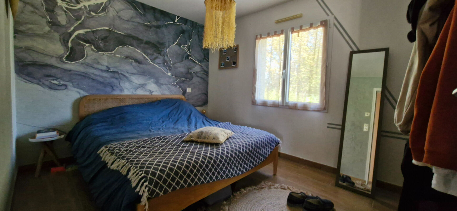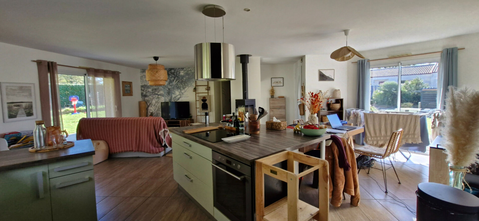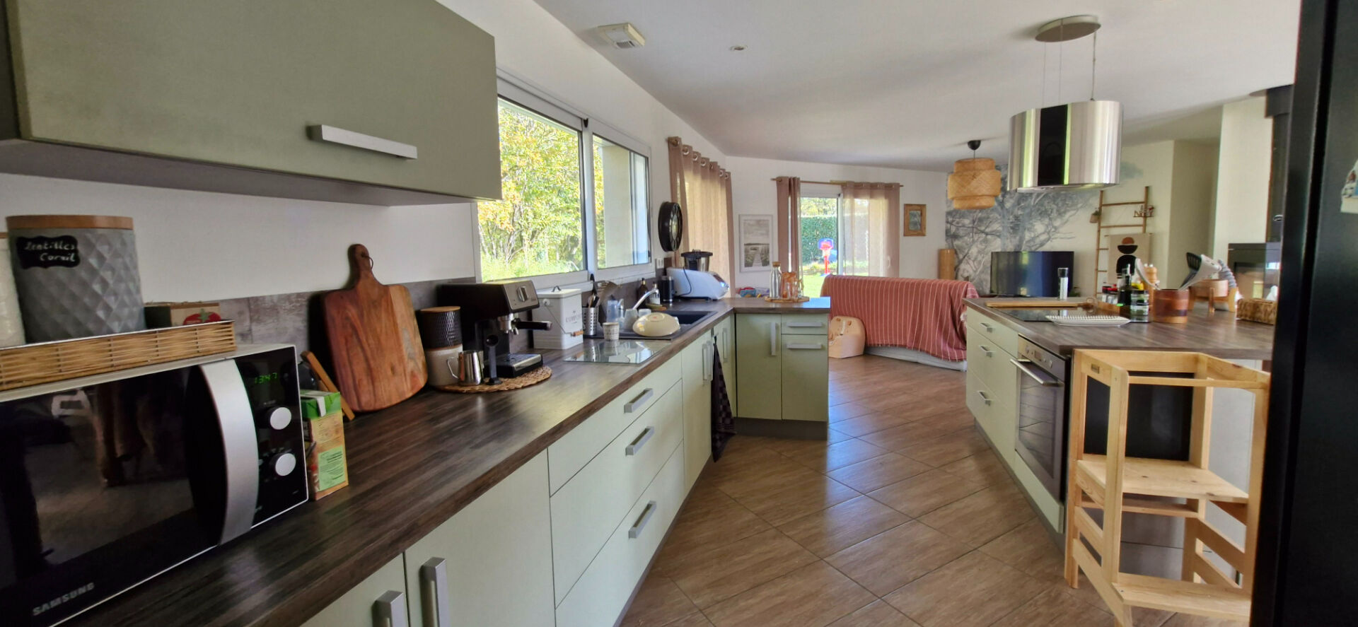 Elle se compose d'une entrée avec placard: vestiaire, d'un salon séjour traversant avec poêle à bois, d'une cuisine aménagée et équipée ouverte, d'une buanderie/ arrière cuisine, 4 chambres, une salle de bain + douche. Garage attenant
