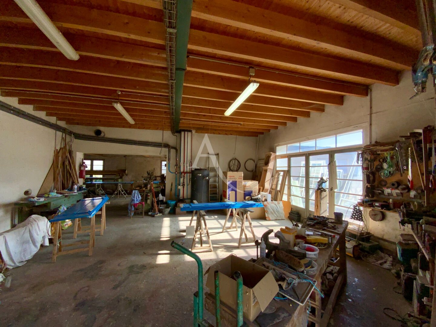 Un garage de 53 m2, cave de 70 m2, un atelier de 120 m2 avec un grenier de 60m2. Un double garage de 180 m2, une pièce bureau indépendante. Un puit en eau, assainissement raccordé au tout à l'égout, chauffage au fuel et chaudière bois.