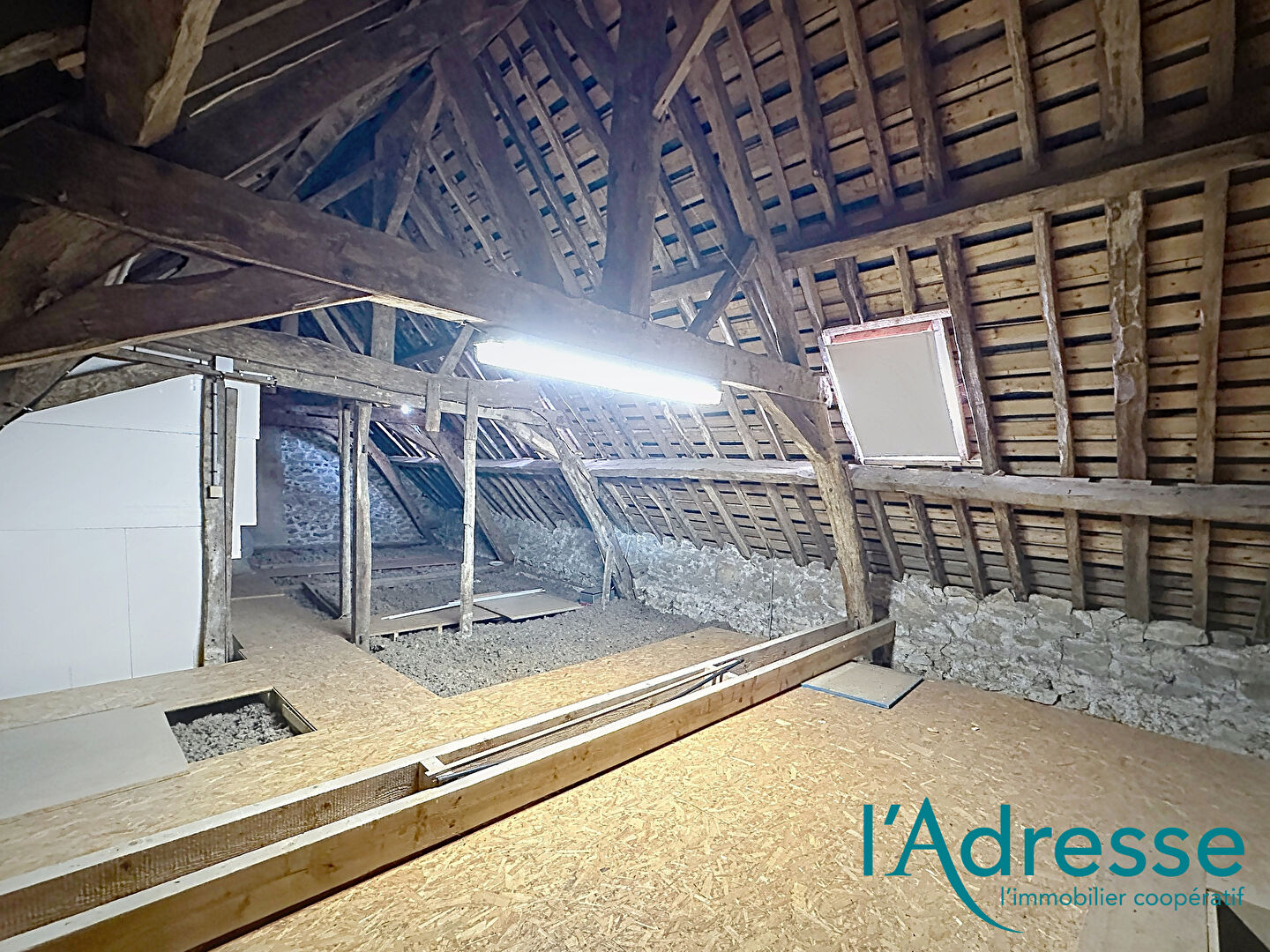 Sous les combles, un second grenier complète l'ensemble, offrant encore davantage de possibilités de stockage ou d'extension selon les besoins.