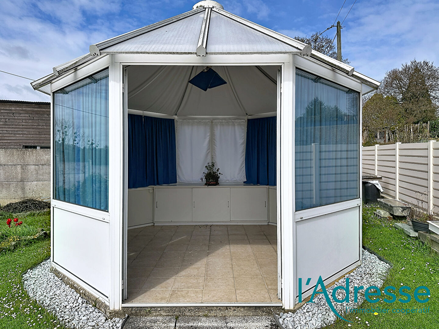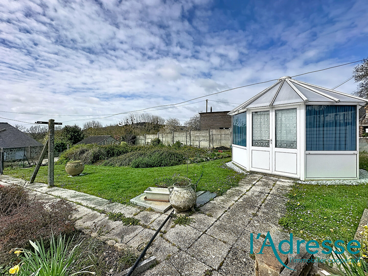 Le terrain non attenant mais a proximité immédiate, dispose d'un bassin et d'une véranda, offrant un espace agréable pour profiter du jardin.