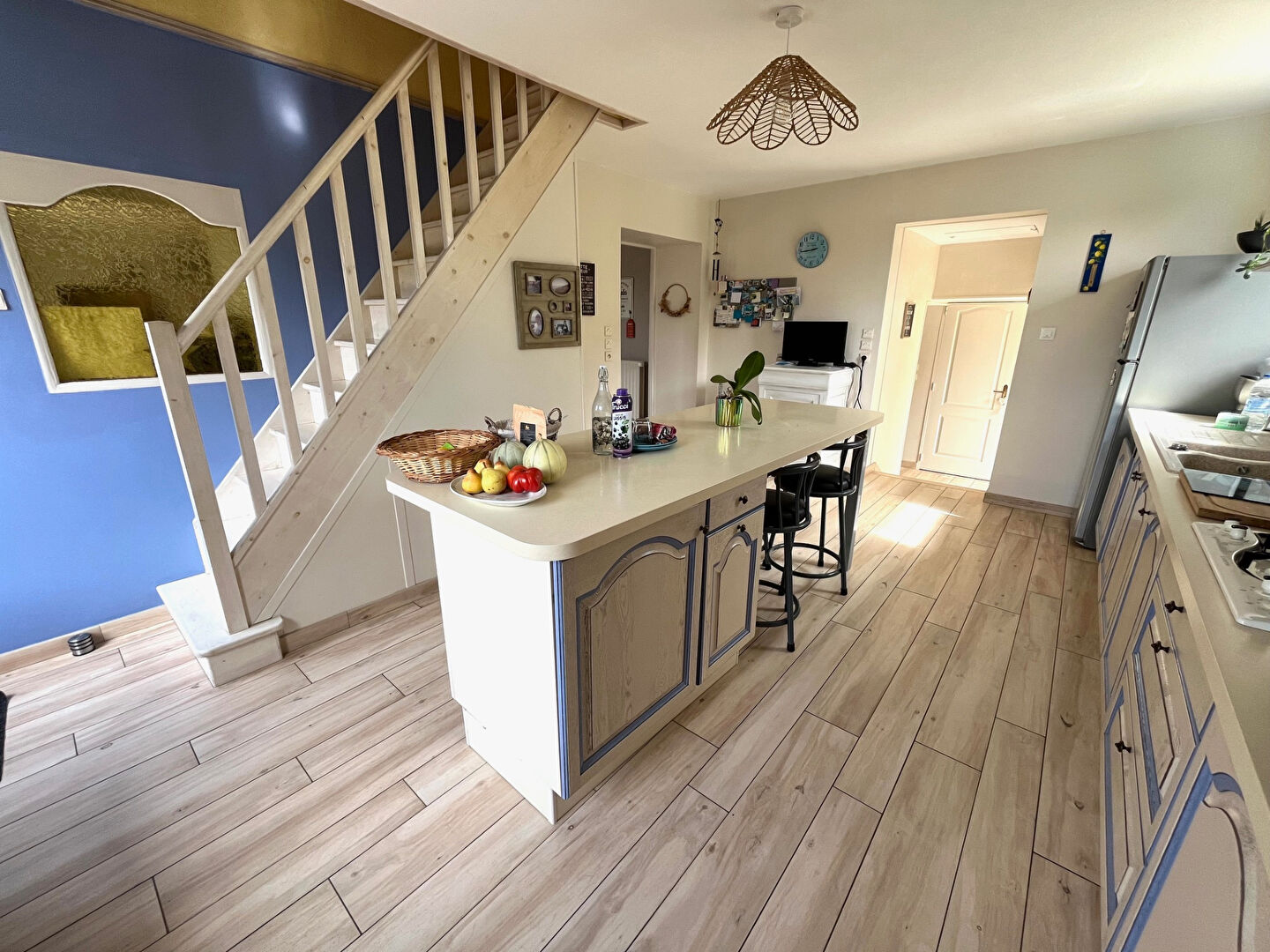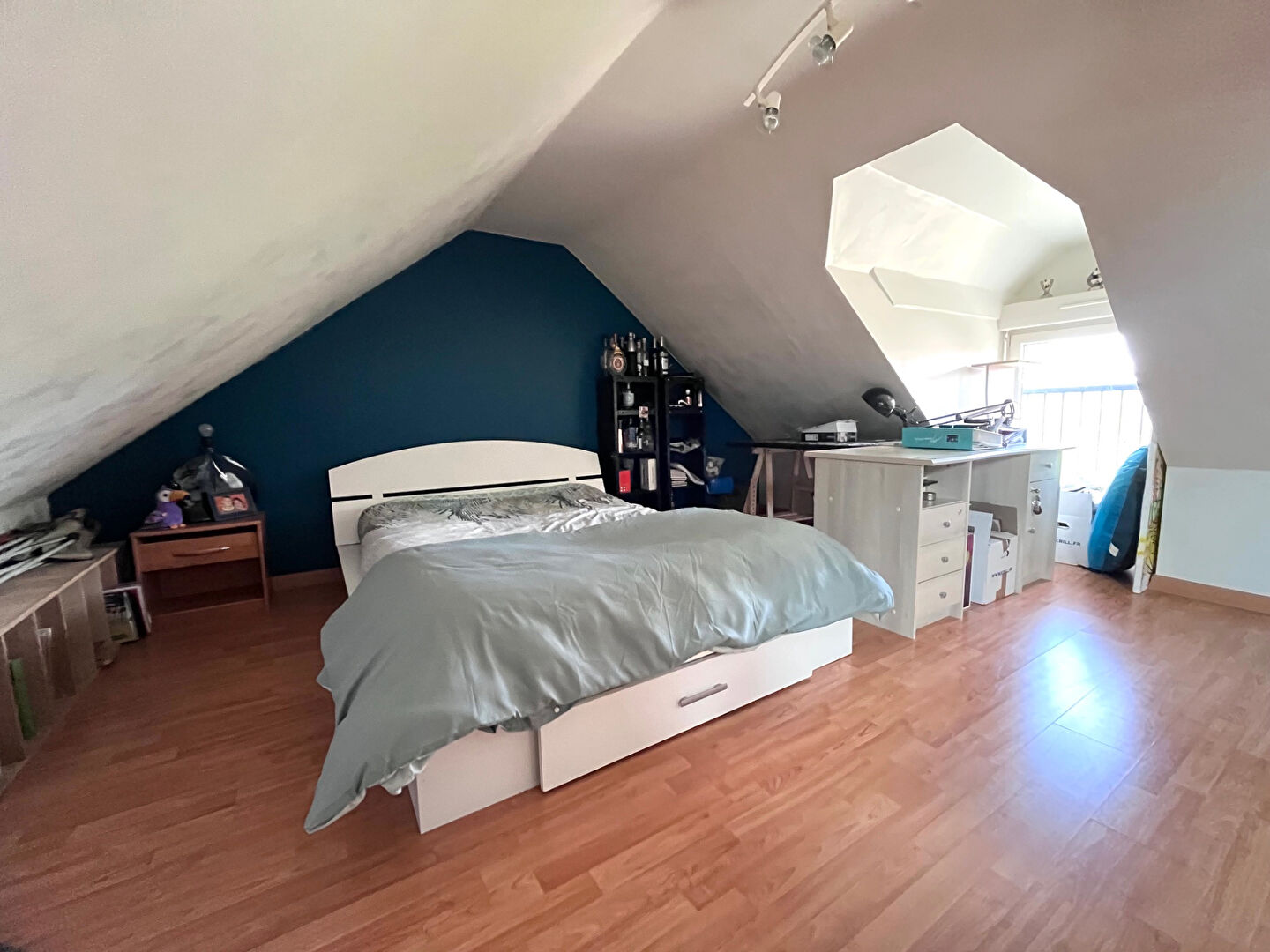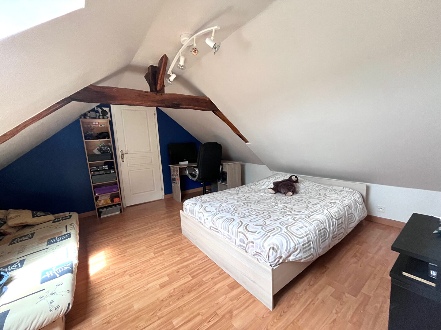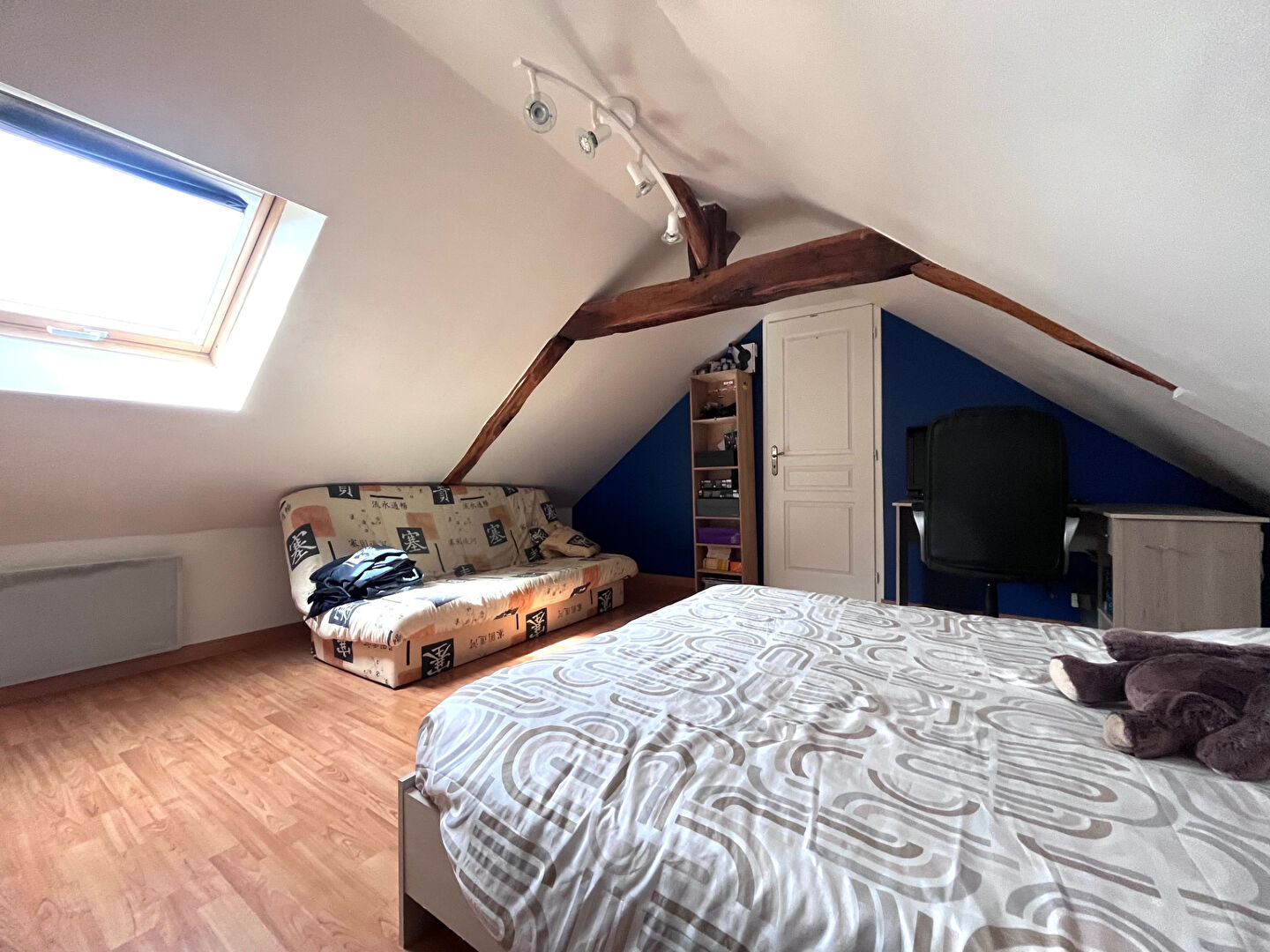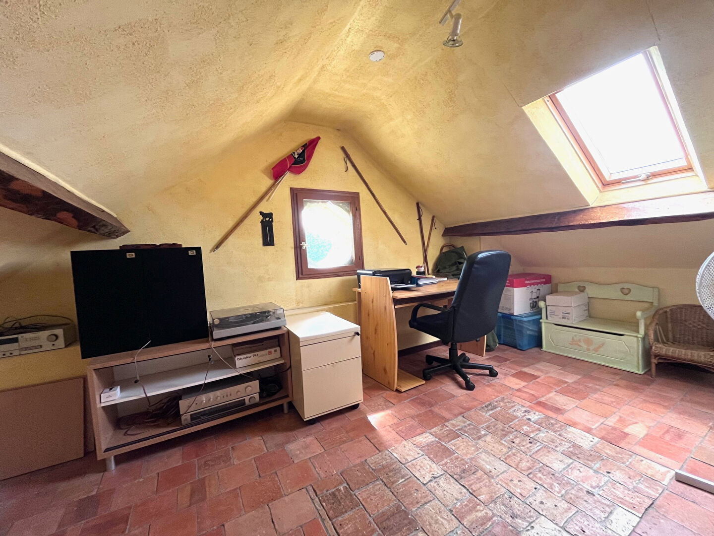 À l'étage, un bel espace ouvert vous attend, idéal pour un coin détente ou un bureau de télétravail, ainsi que deux grandes chambres en enfilade offrant de multiples possibilités d'aménagement.