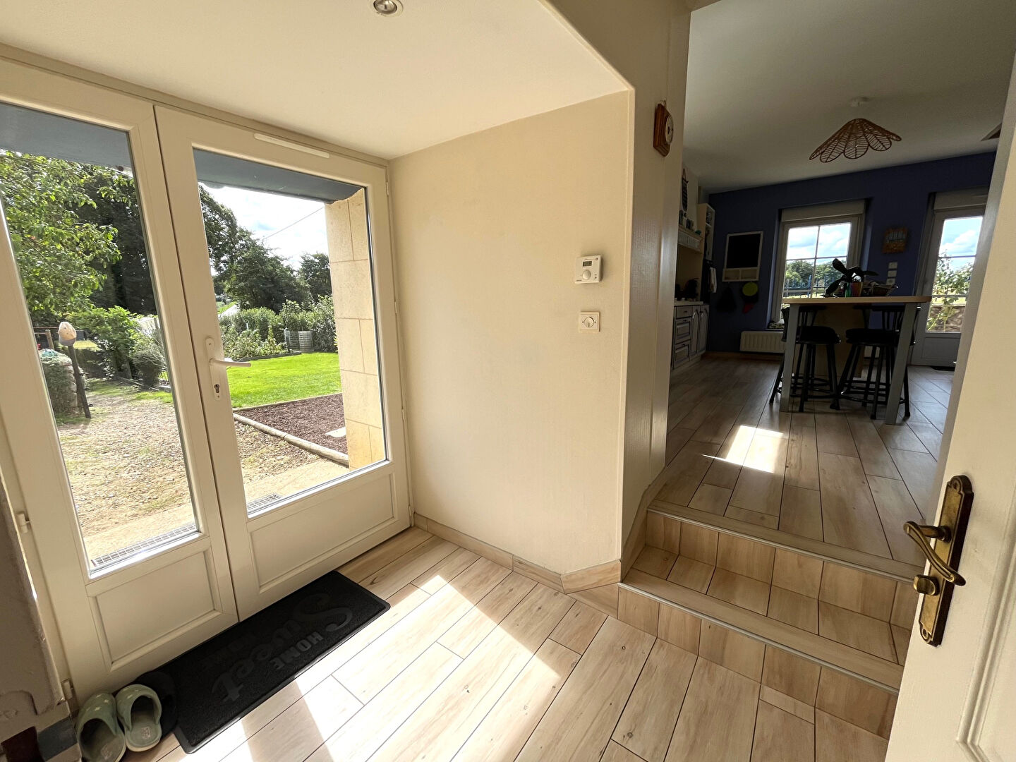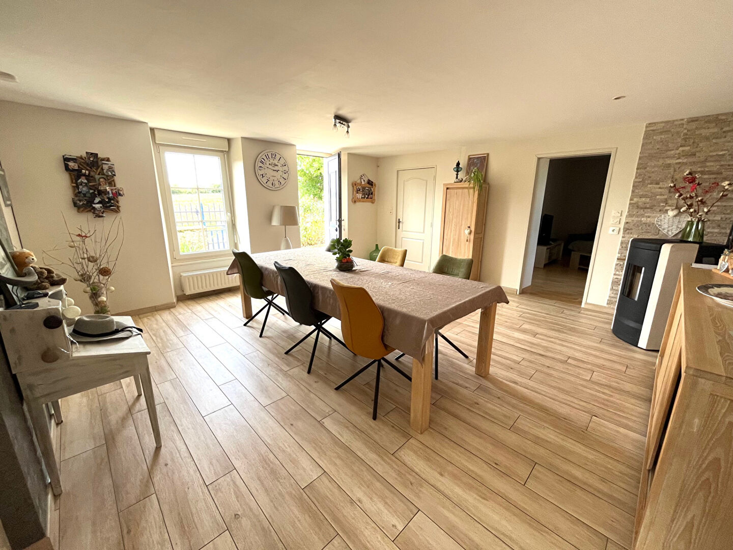 Située dans un cadre paisible et verdoyant, cette superbe longère allie le charme de l'ancien au confort moderne. Rénovée avec soin, elle offre une vie de plain-pied idéale et des volumes généreux pour accueillir toute la famille.