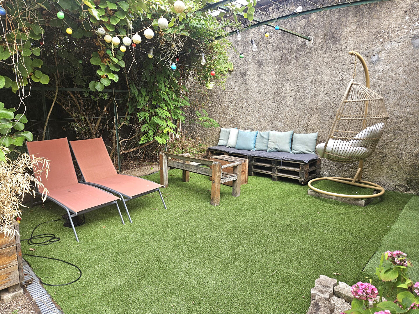 Le tout sur un terrain clos et arboré de 500 m2 environ, idéal pour qui veut profiter du jardin au calme, et sans trop d'entretien !