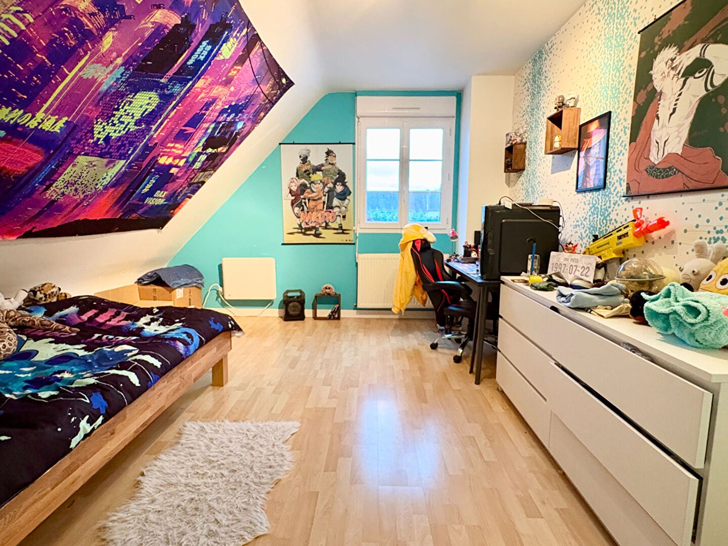 À l'étage : 4 chambres spacieuses et une salle de bains. Bonus : une grande pièce de 40 m2 idéale pour salle de jeux, home cinéma, bureau, activité professionnelle, chambre supplémentaire.