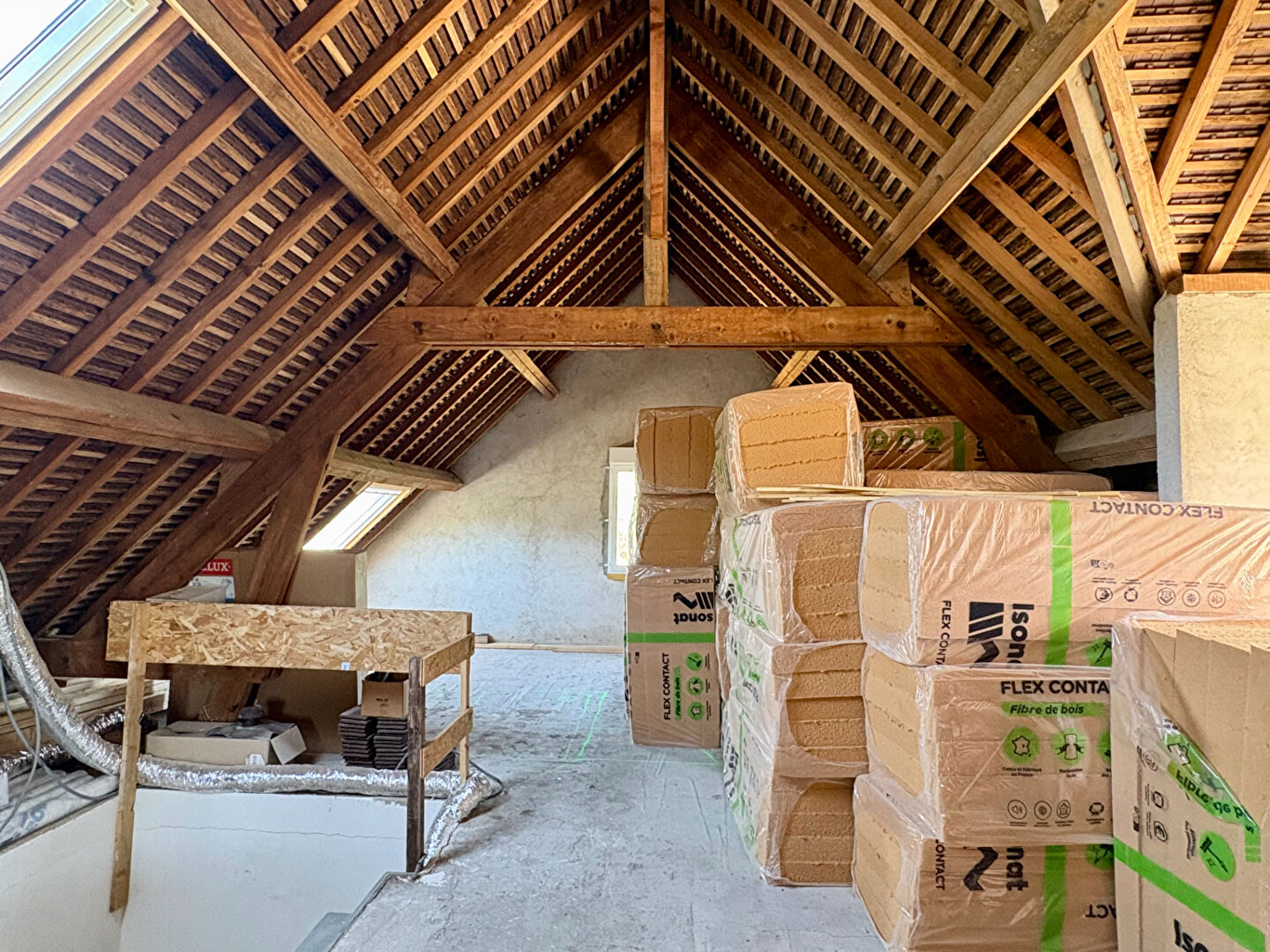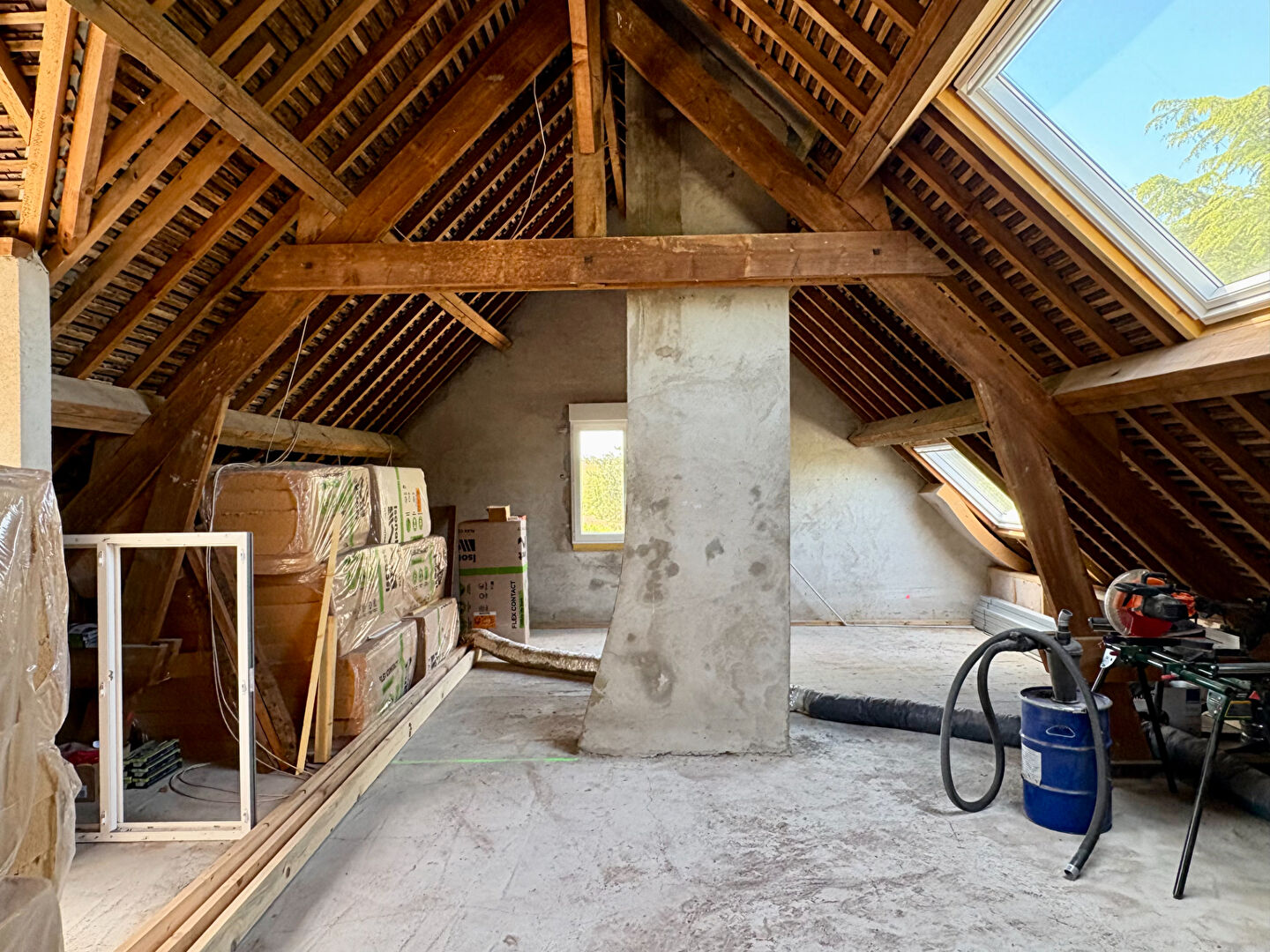 À l'étage, un superbe grenier prêt à être aménagé (matériaux, isolation, réseaux, ouvertures), idéal pour créer deux chambres supplémentaires et une salle d'eau.