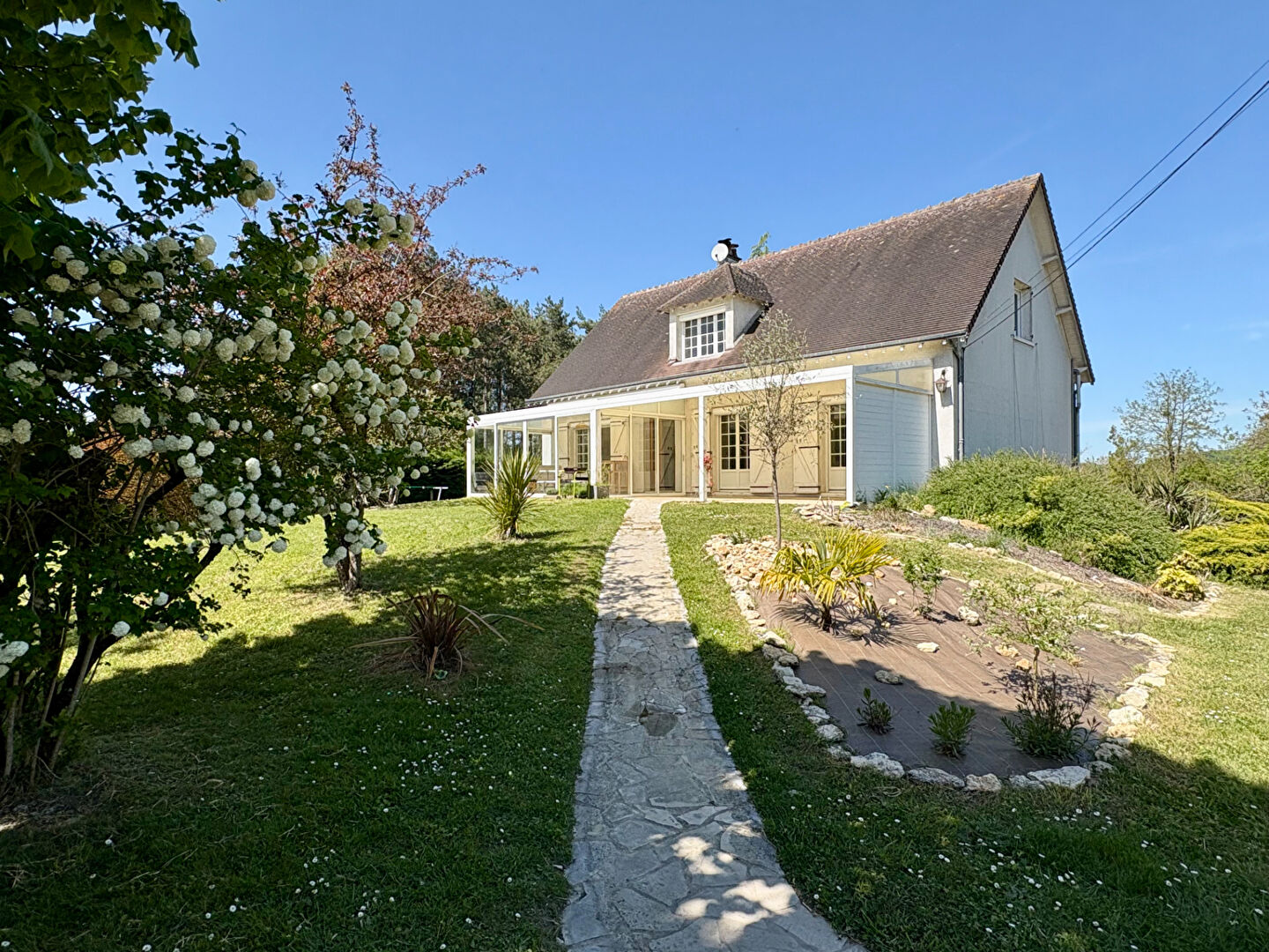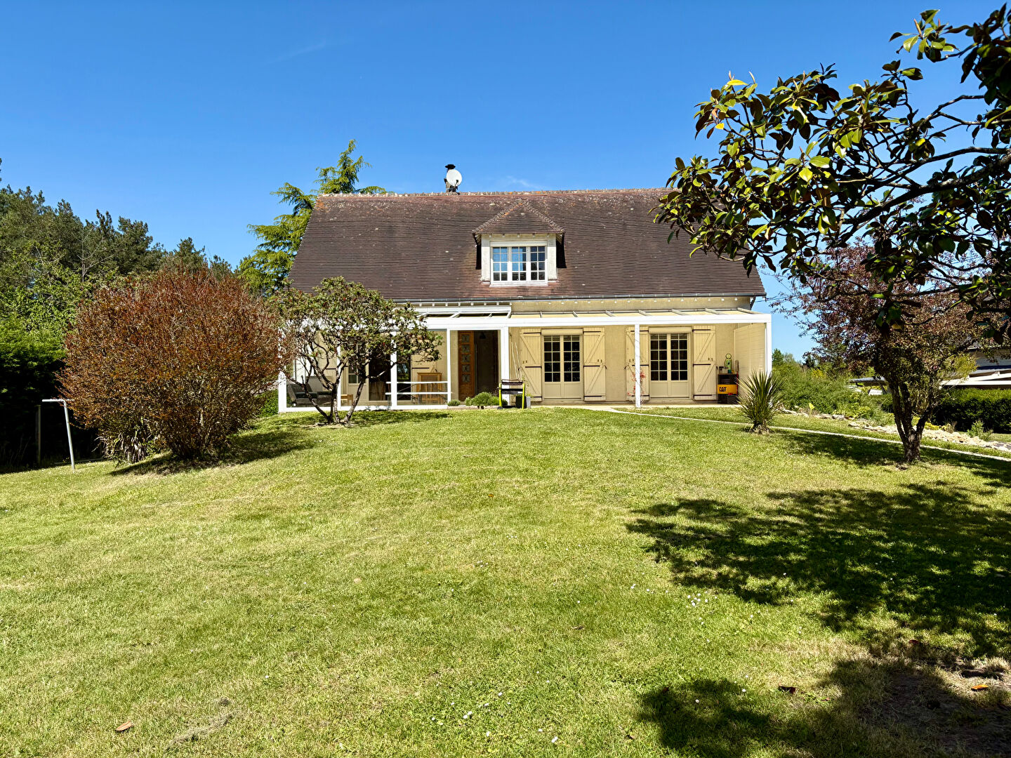 Une véranda de 20 m2 vient prolonger agréablement l'espace de vie, idéale pour recevoir ou profiter d'un salon d'été lumineux.