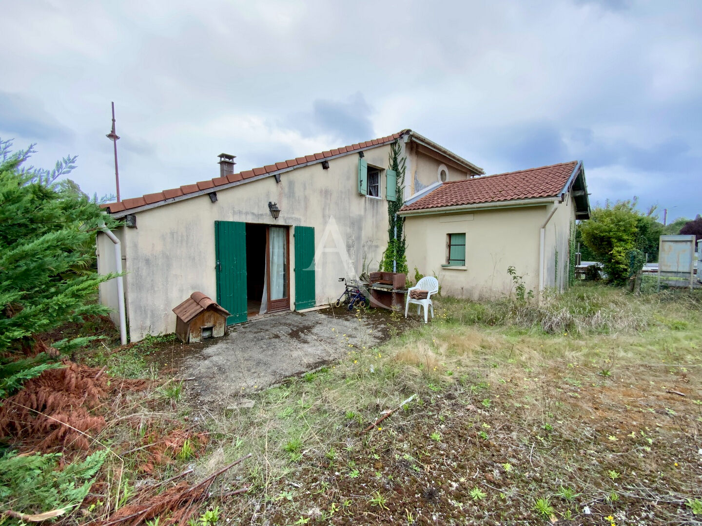 Ancienne maison de garde-barrière à rénover, située dans le bourg de Saint-Germain-de-Lusignan, à deux pas de Jonzac et de l'école.