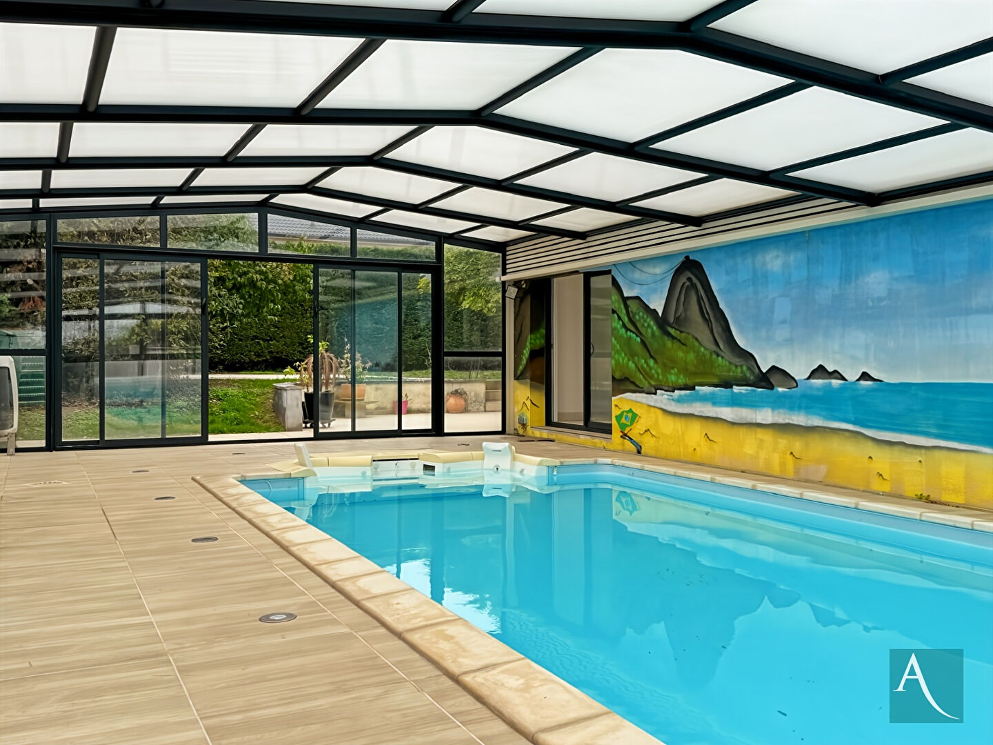 Dès l'arrivée, le ton est donné : une grande cour pouvant accueillir plusieurs véhicules, un jardin intime exposé plein sud, une terrasse conviviale, et au centre de la vie de famille - une piscine couverte chauffée, accessible toute l'année grâce à sa pompe à chaleur dédiée et à sa véranda bulle ouvrable sur le séjour.
