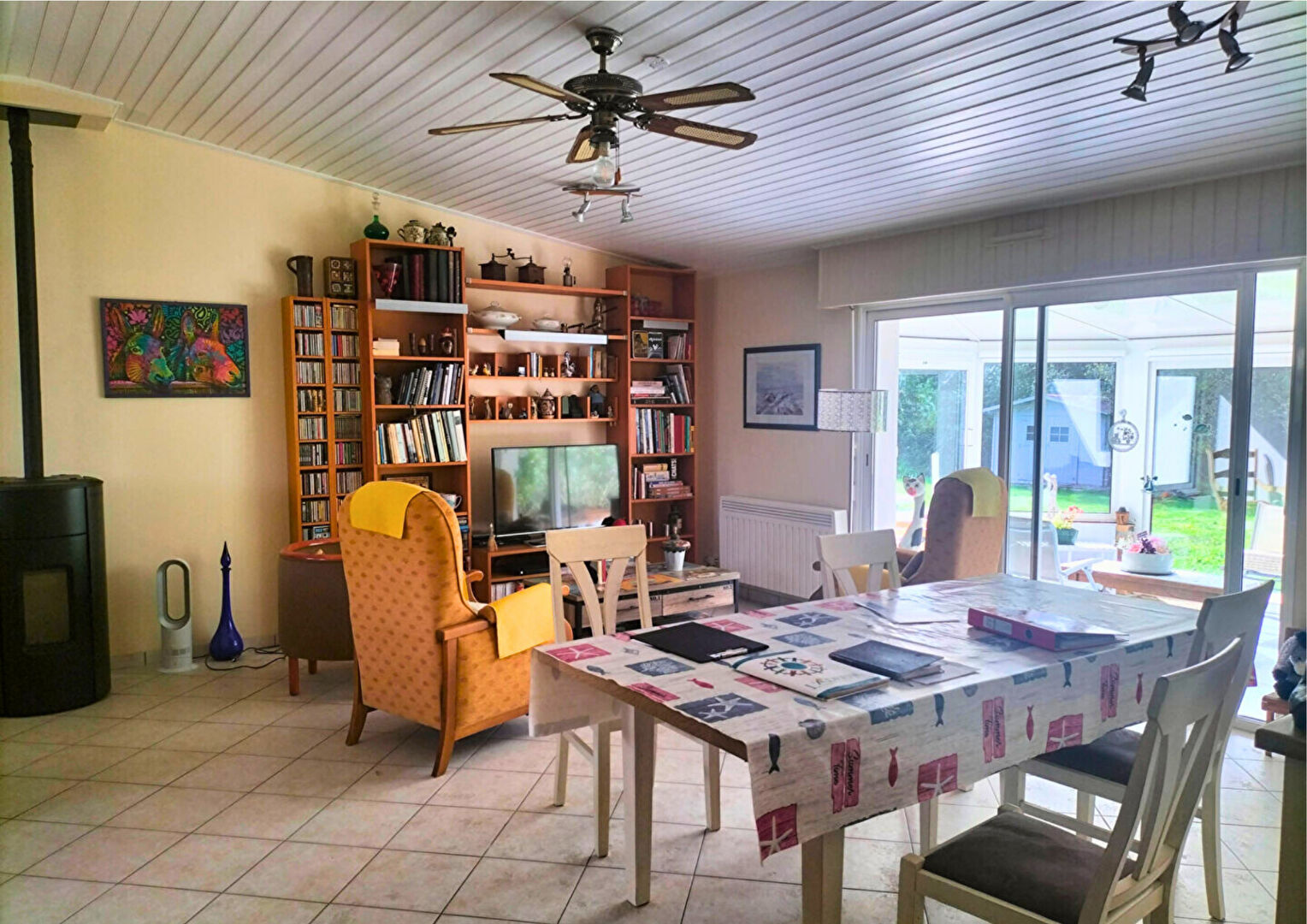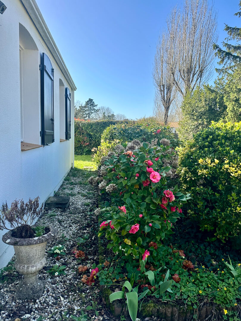 Maison de plain-pied située au calme dans un quartier tranquille, proche du bourg. Elle offre une belle pièce de vie lumineuse, 4 chambres dont une suite parentale, un bureau pouvant servir de 5e chambre, véranda et dépendances.