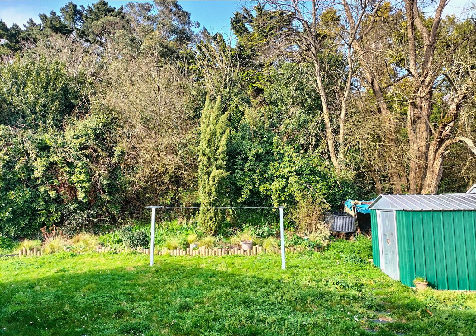 Un garage complète l'ensemble, utile pour le stockage.