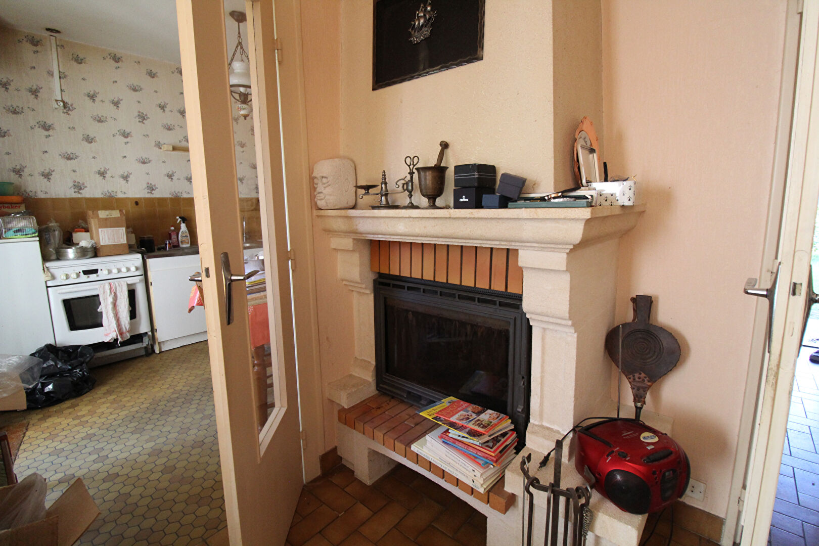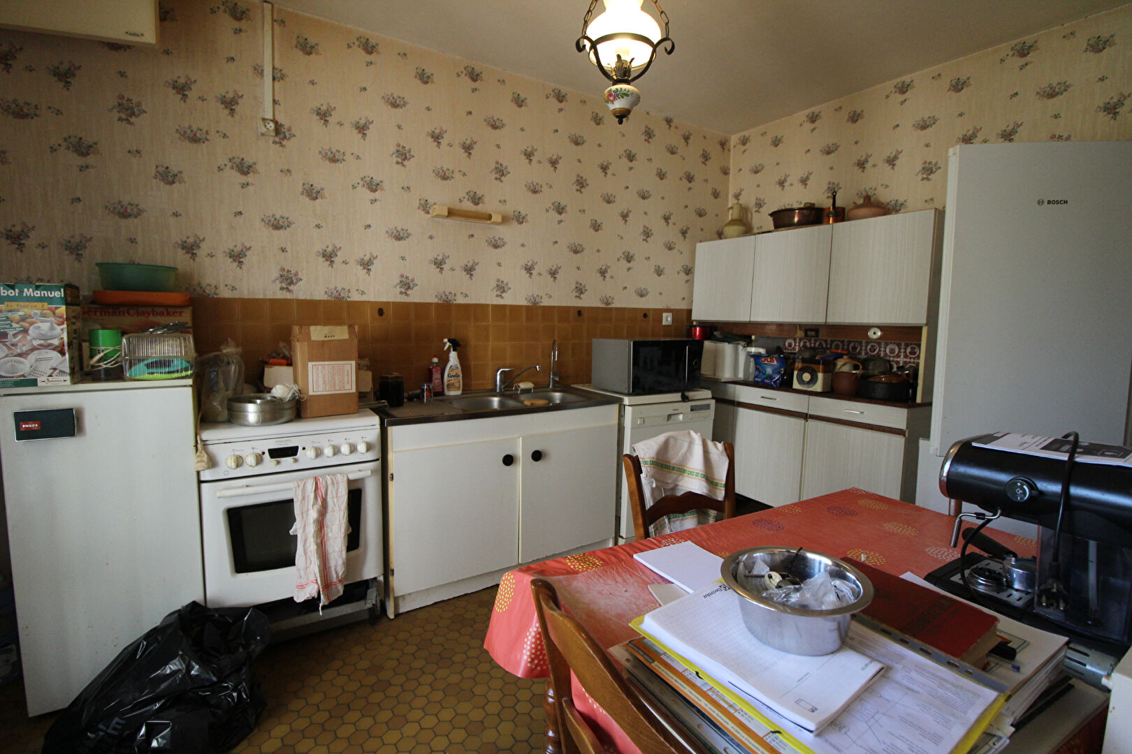 Entrée avec placard, séjour-salon avec cheminée-insert, cuisine, 3 chambres, salle de douche, toilettes.