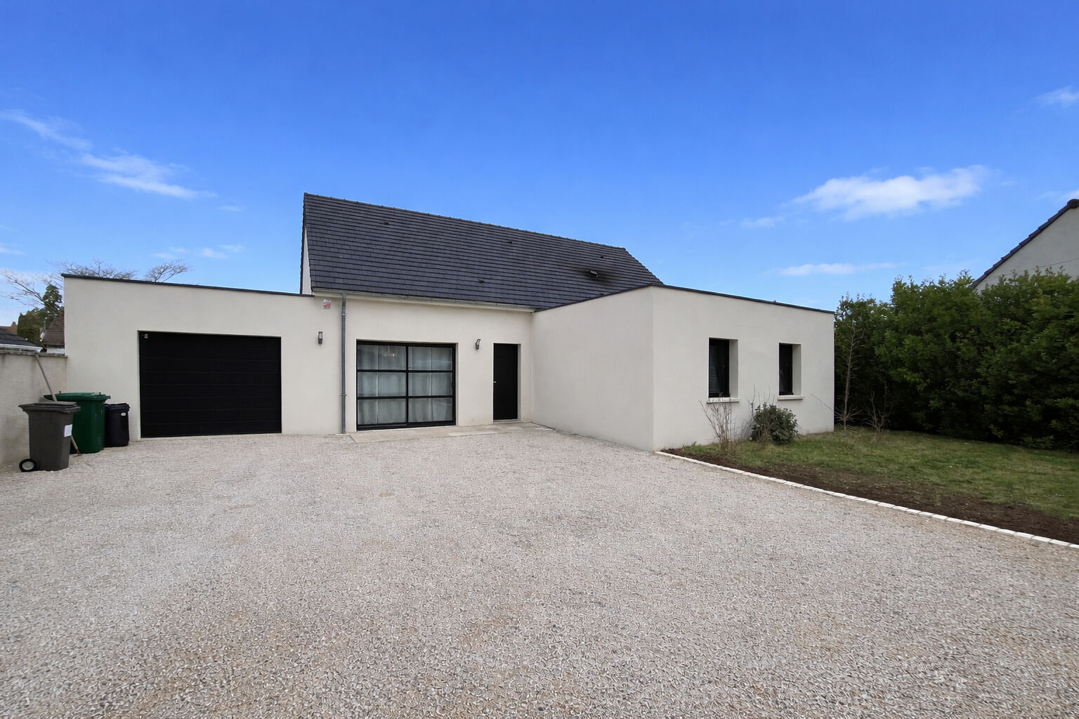 EXCLUSIVITÉ - SAINT GERVAIS LA FORET - RARE - Magnifique maison contemporaine de 2015, entièrement de plain pied offrant une pièce de vie lumineuse de 60 m², 3 belles chambres dont une suite parentale avec salle d'eau et dressing, une salle d'eau, wc séparés, une buanderie et un garage de 25 m². L'ensemble sur joli jardin de 885 m² entièrement clos et sans vis à vis.