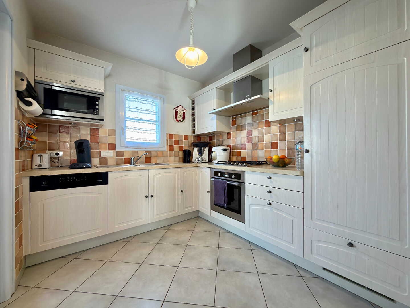 En excellent état général, elle se compose d'une entrée, d'un lumineux salon-séjour, d'une cuisine aménagée et équipée, d'un cellier, d'un dégagement, de 3 chambres dont une avec salle d'eau et wc, d'une salle de bains avec baignoire balnéo et douche, d'un WC indépendant et de nombreux rangements. Une véranda vient également compléter l'ensemble.