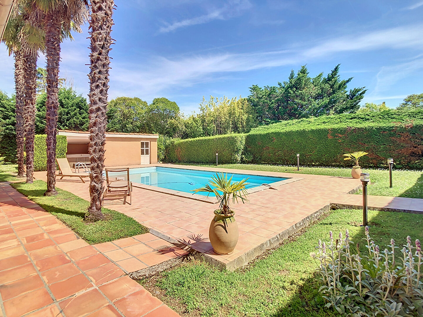 Vous allez tomber sous le charme des espaces extérieurs paysagés offrant un cadre de vie et un environnement des plus agréable avec ses 2 terrasses, la Piscine 10 x 5 exposée Sud-Ouest et son Pool House pour profiter des beaux jours en famille ou entre amis.