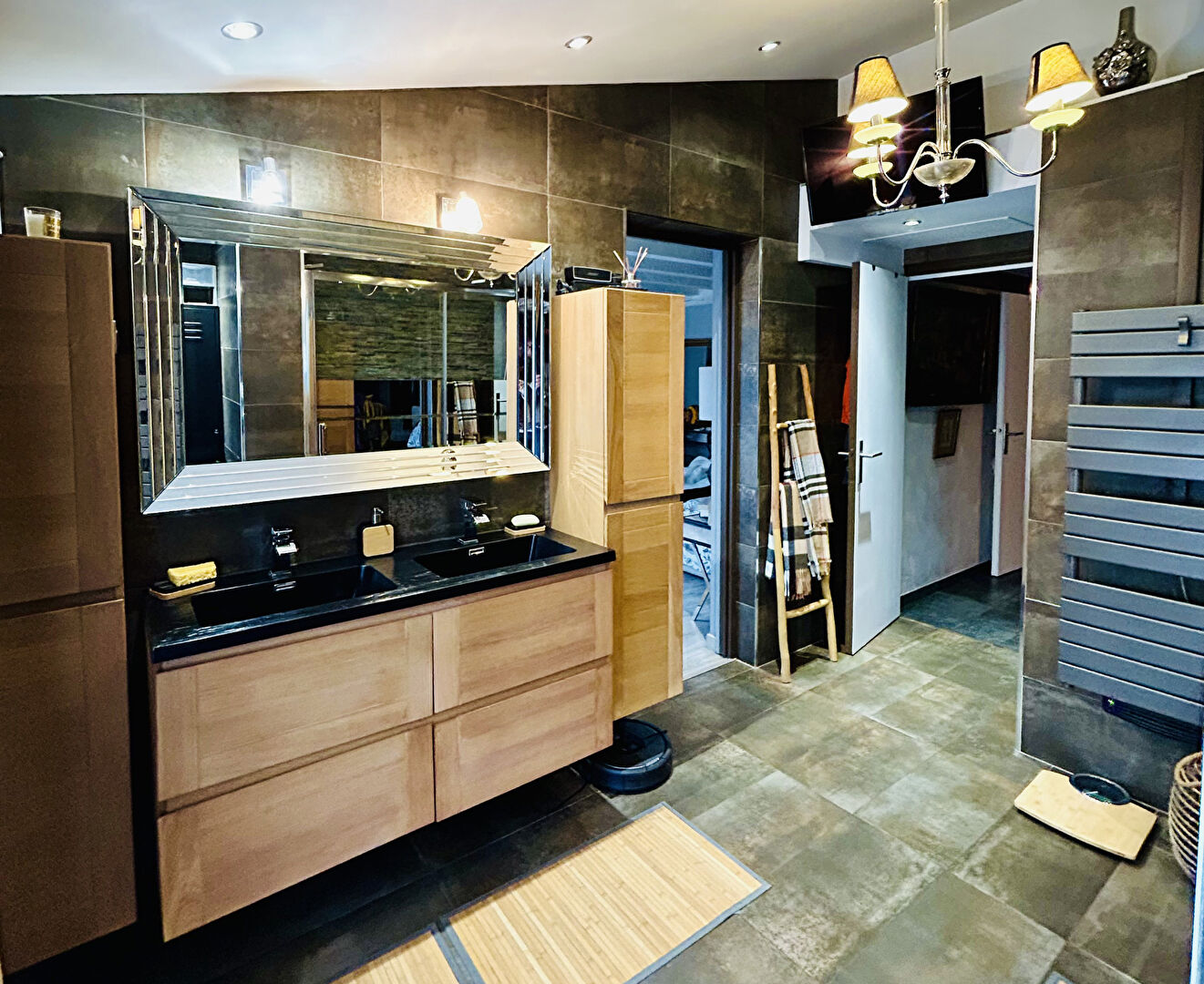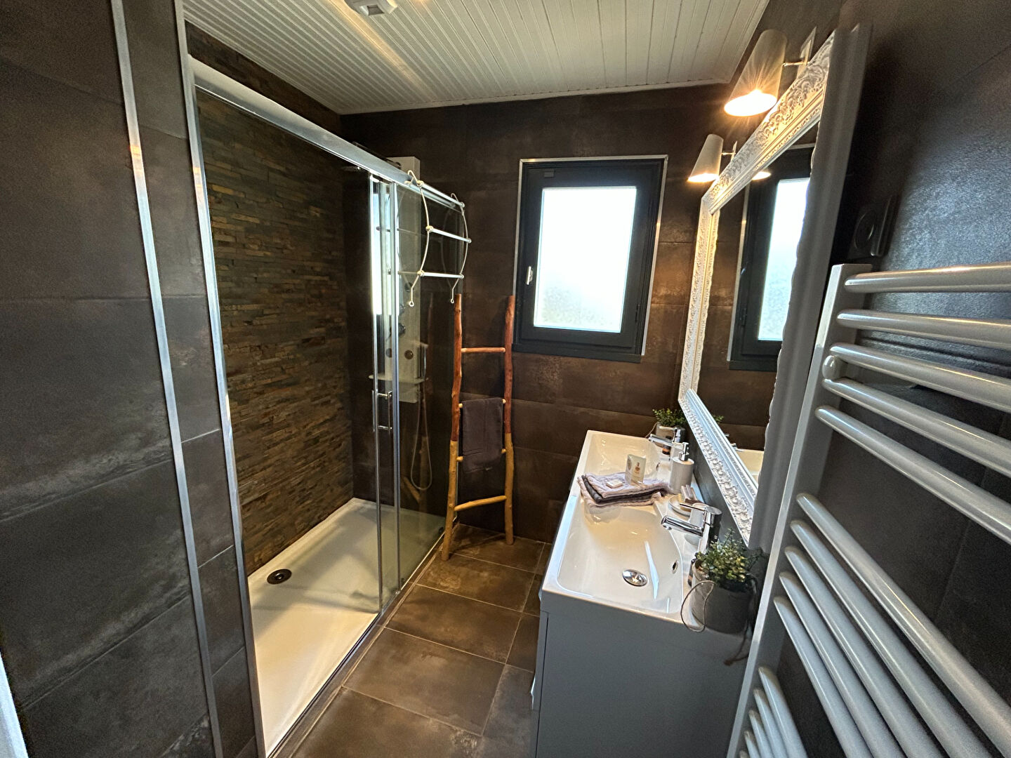 Une salle d'eau supplémentaire, équipée d'une grande douche et d'un lavabo double vasque, desservant les chambres pour un confort optimal.