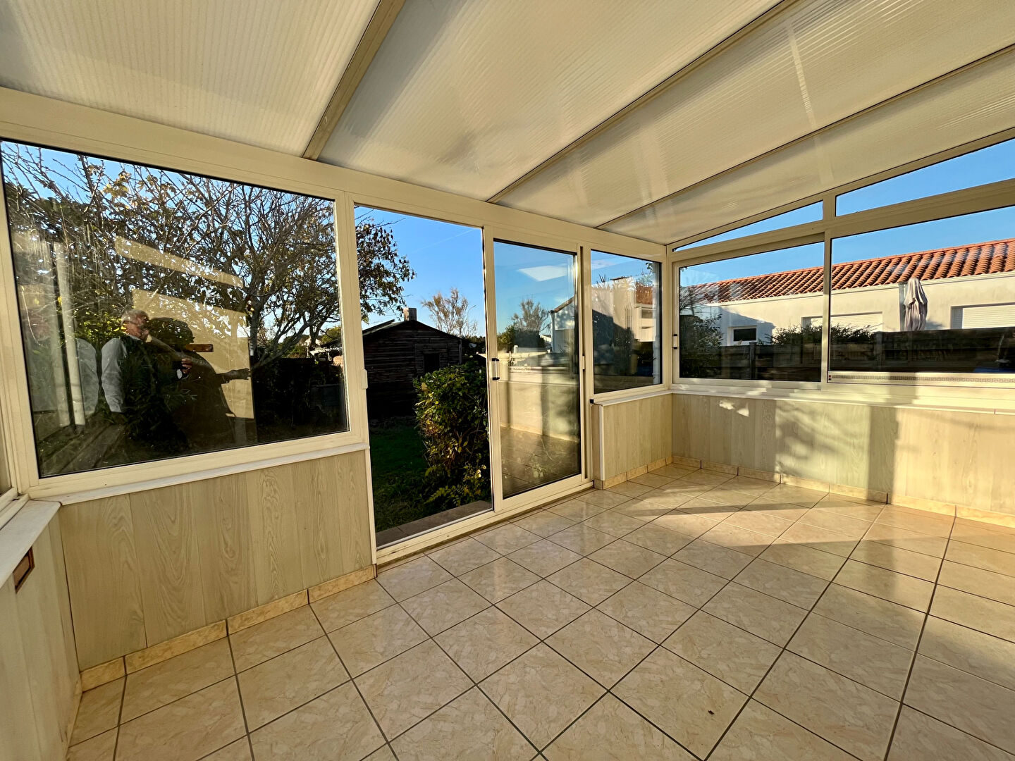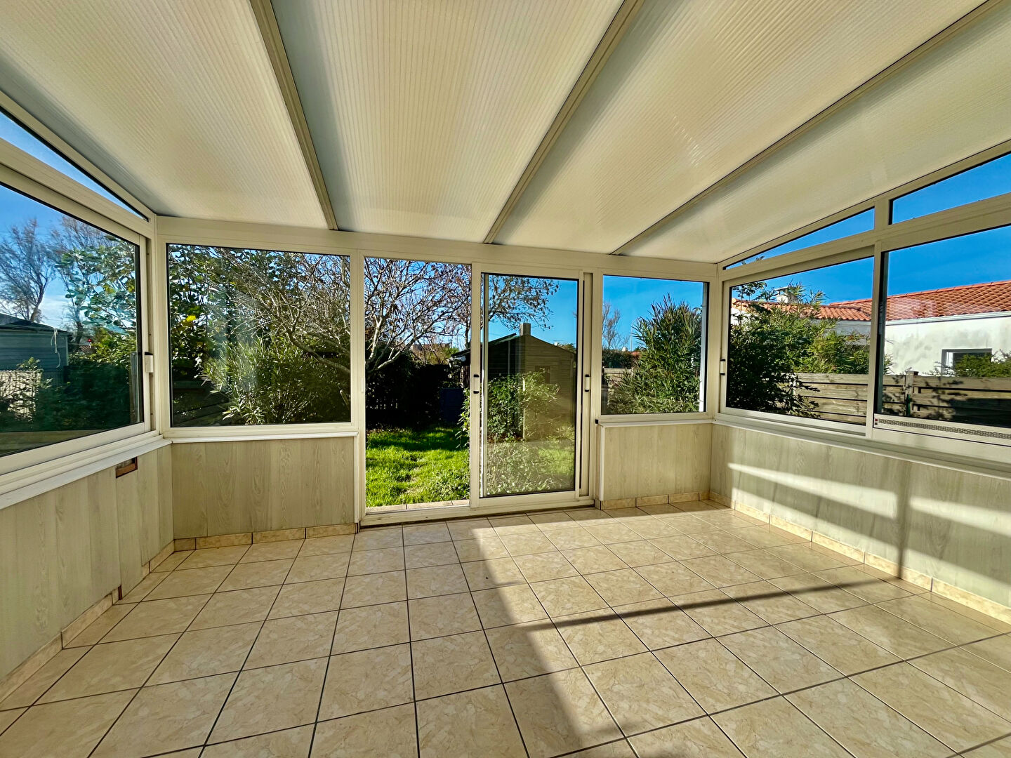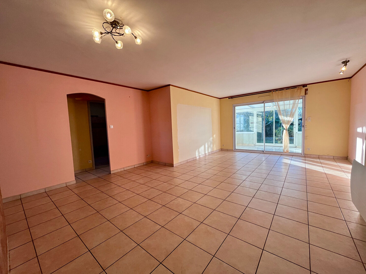 Un grand salon-séjour lumineux prolongé par une véranda conviviale,