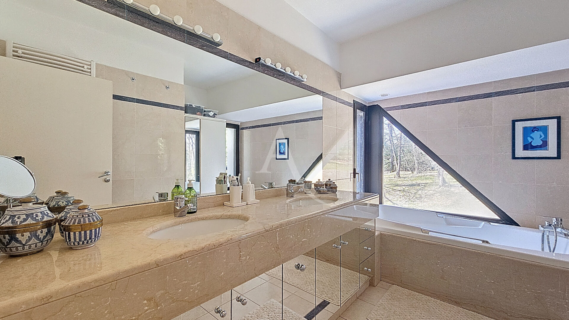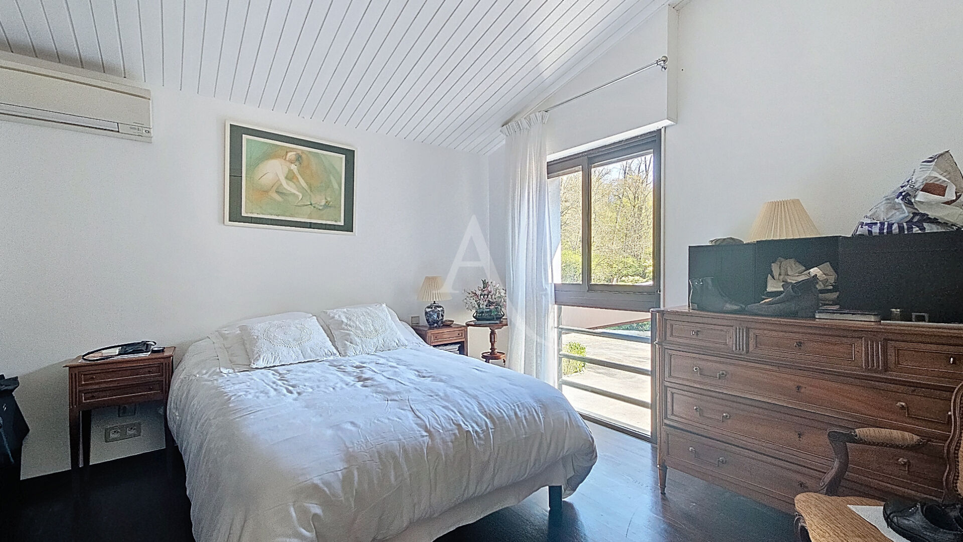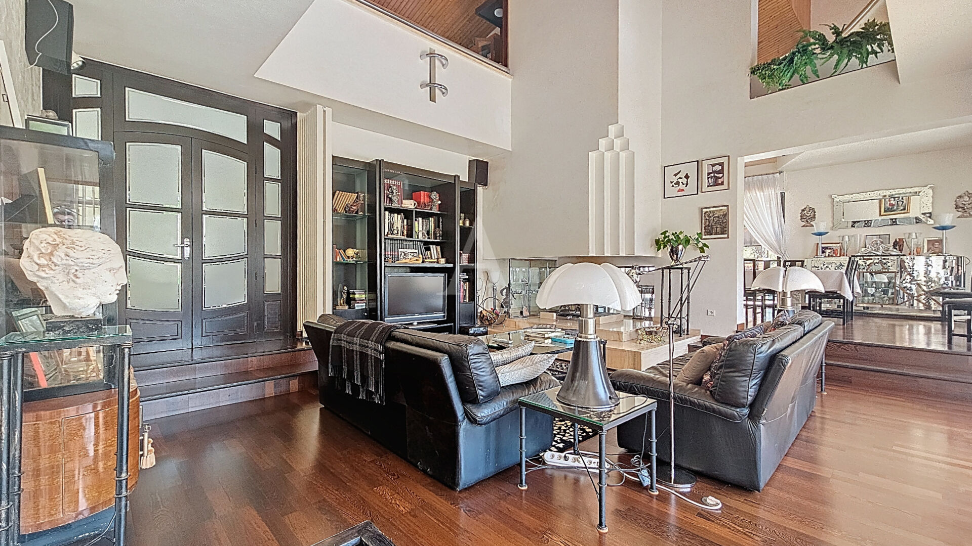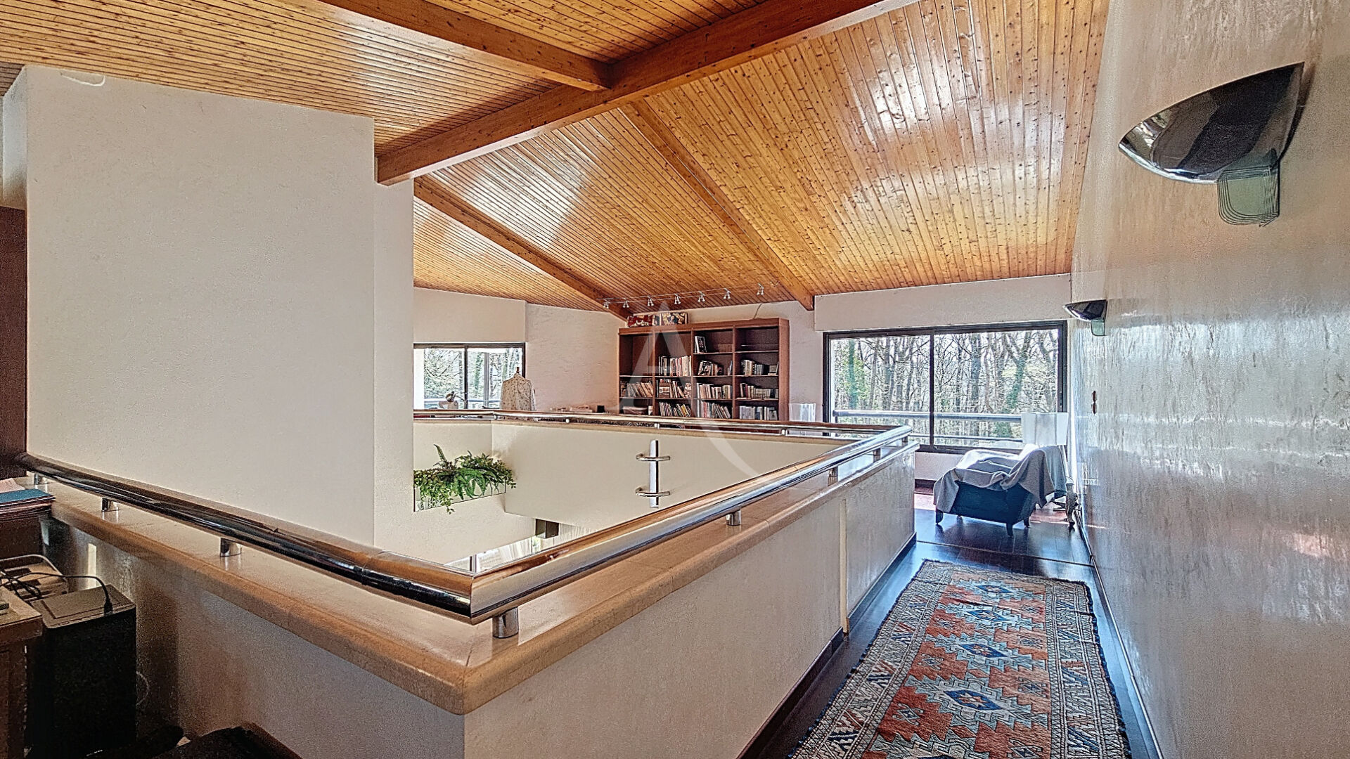Au calme et sans vis à vis, située dans un parc boisé classé d'un hectare, proche de toutes les commodités, maison d'architecte d'environ 400 m². Un hall d'entrée dessert les pièces de vie du rez-de-chaussée, lumineuses et toutes avec vue sur la parc : un salon avec cheminée ouverte et belle hauteur sous plafond, une salle à manger, une pièce de réception avec sa terrasse couverte, une cuisine équipée. A l'étage, deux bureaux en mezzanine et bibliothèque. Egalement une suite parentale avec dressing et salle de bains, trois chambres et une autre salle de bains. Au sous-sol , nous trouvons une chambre avec salle d'eau, des pièces de service, un hammam, un sauna. Maison parfaitement entretenue, tout a été prévu pour le confort de ses occupants.