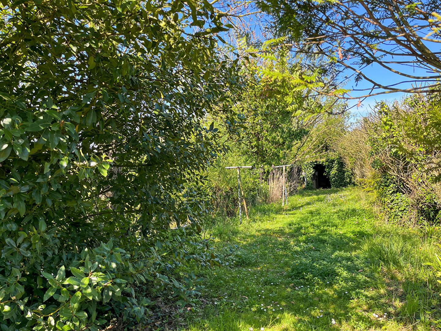 Pour le stockage des outils se trouve un cabanon de jardin en fond de parcelle, le tout sur une surface d'environ 400m².
