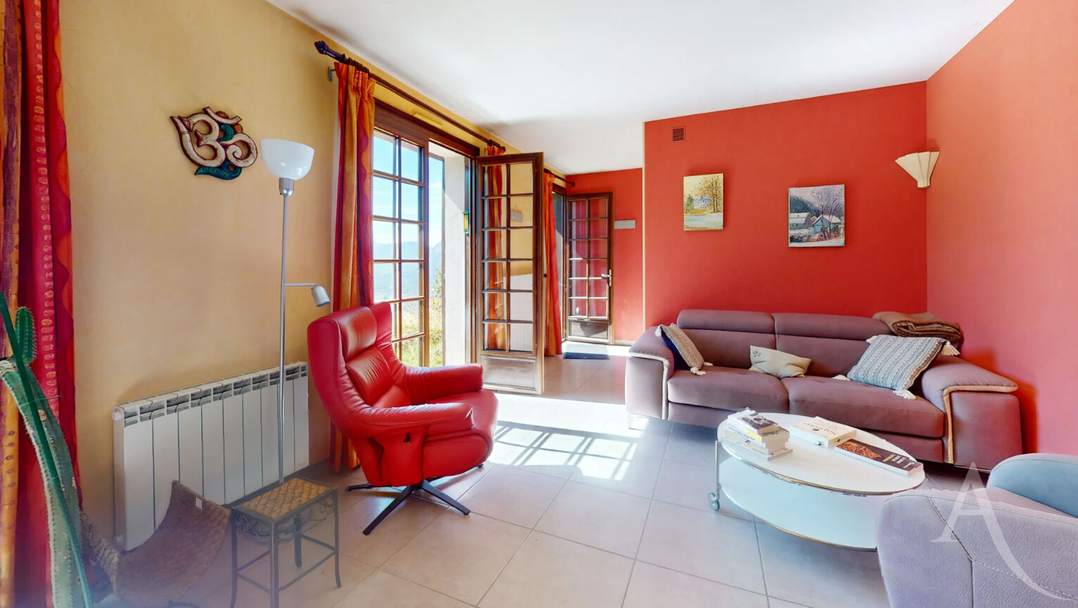 Le terrain de 1500 m² offre une partie plate exploitable et une reste en pente. Vous serez séduit par la vue dégagée et le cadre de vie paisible.