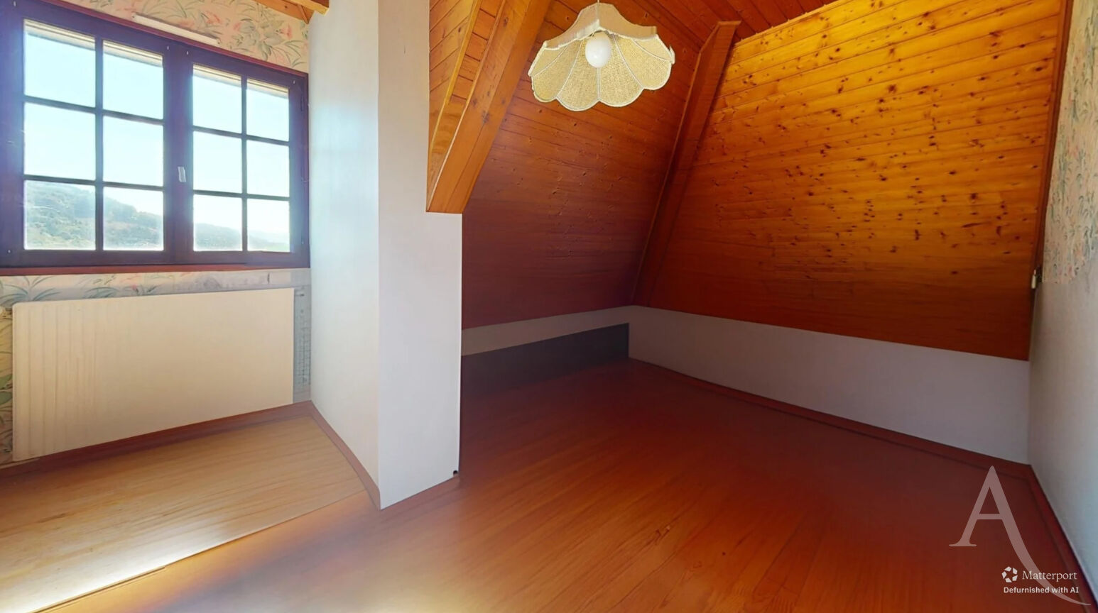 À l'étage, la maison propose trois chambres dont une en mezzanine, ainsi qu'une salle de bain avec douche et baignoire.