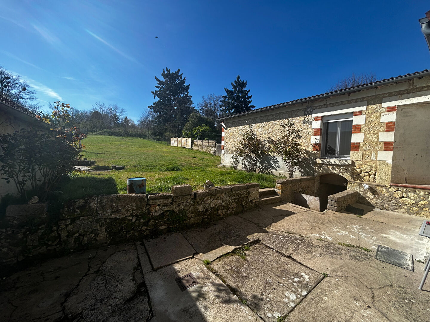Une cave et un terrain de 1 200 m² entièrement clos.