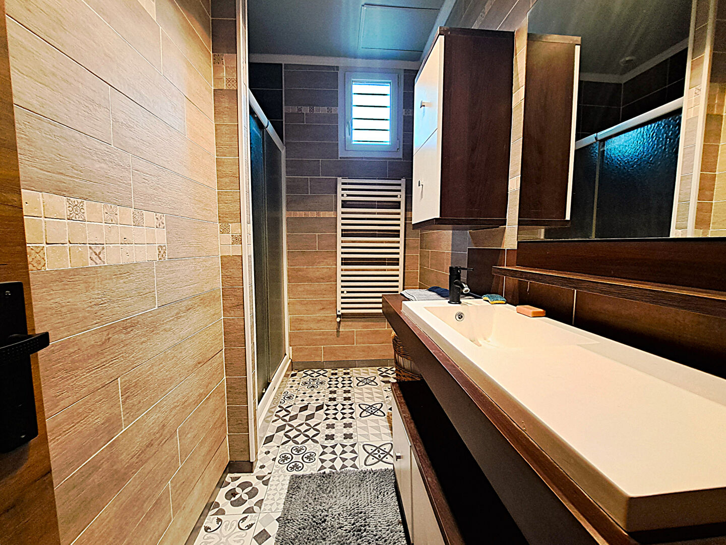 A l'étage deux grandes chambres offrent un espace de nuit confortable et harmonieux, une salle d'eau moderne.