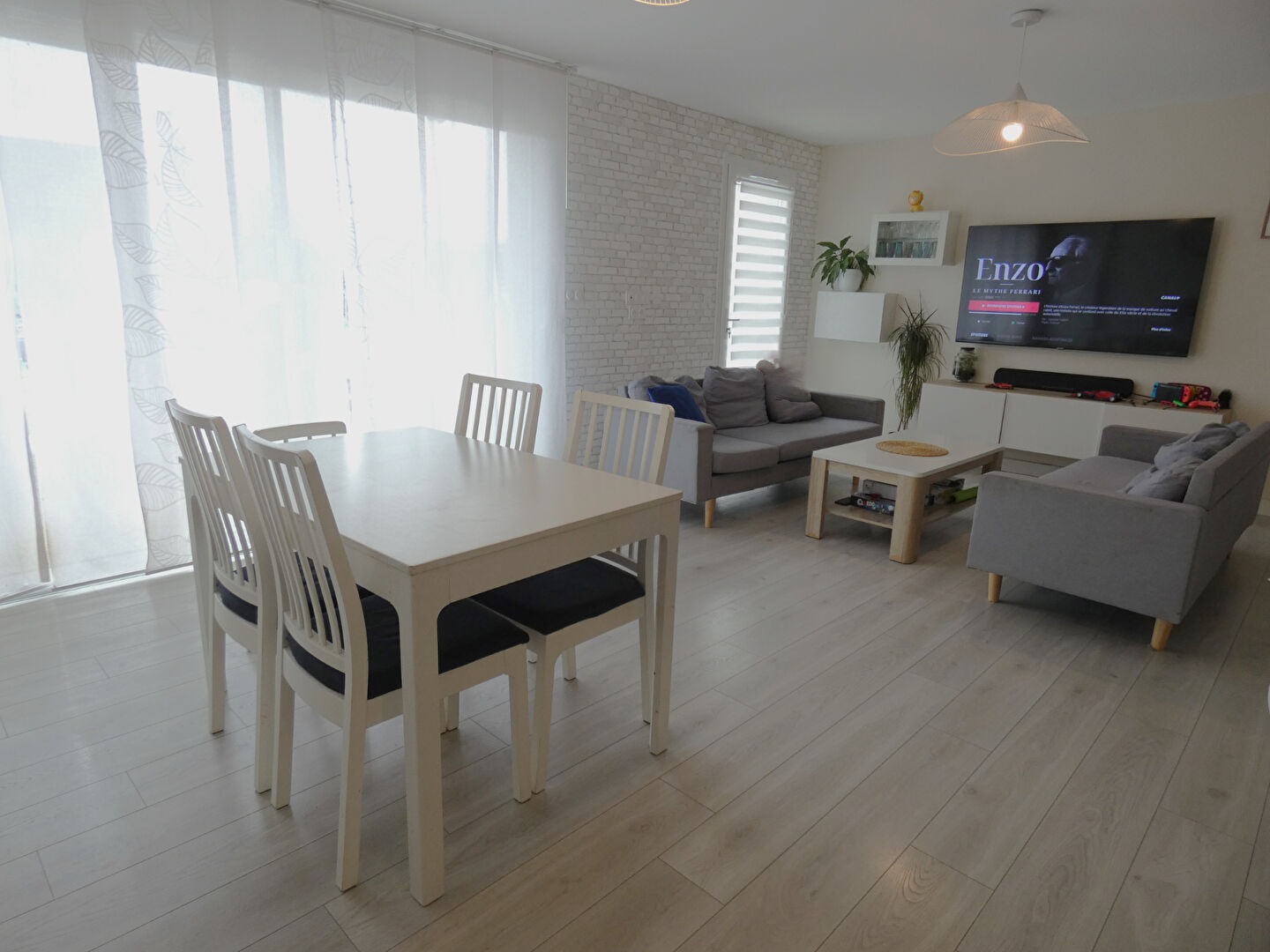 Elle se compose d'une belle pièce de vie spacieuse et baignée de lumière, offrant un espace convivial pour toute la famille. La cuisine ouverte, moderne et pratique, s'intègre parfaitement à l'ensemble et favorise les moments de partage.