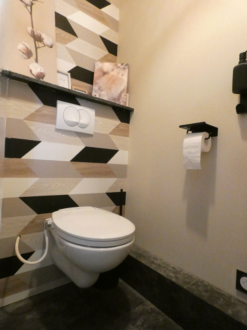 Côté nuit, vous trouverez trois chambres confortables, idéales pour une famille ou pour aménager un bureau selon vos besoins. Une salle d'eau fonctionnelle complète l'espace, ainsi qu'un WC séparé avec lave-mains pour plus de confort au quotidien.