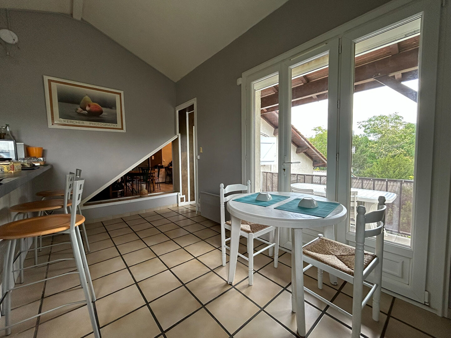 A l'étage, un appartement de type T2, avec sa cuisine et sa pièce de vie, une grande chambre et un wc indépendant. Cet espace est accessible par l'intérieur de la maison ou de façon privative par un escalier extérieur.