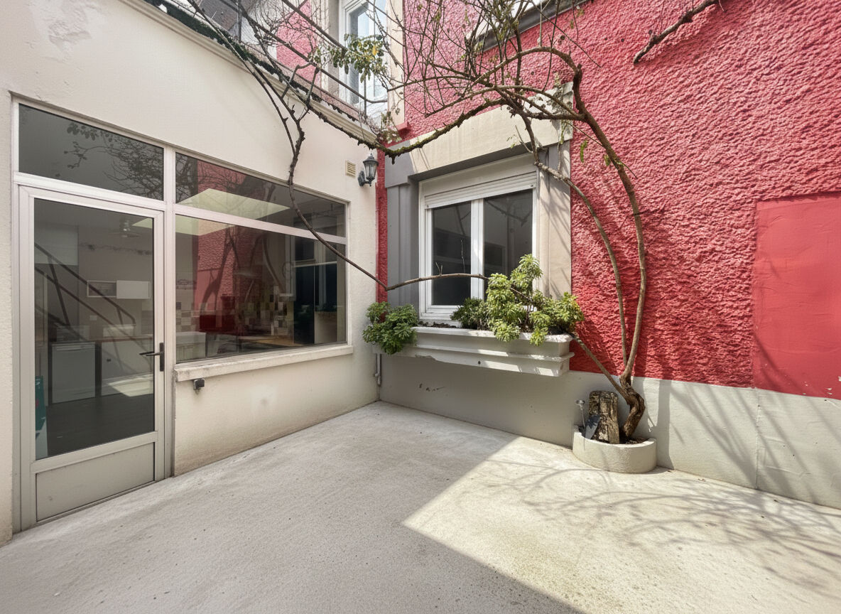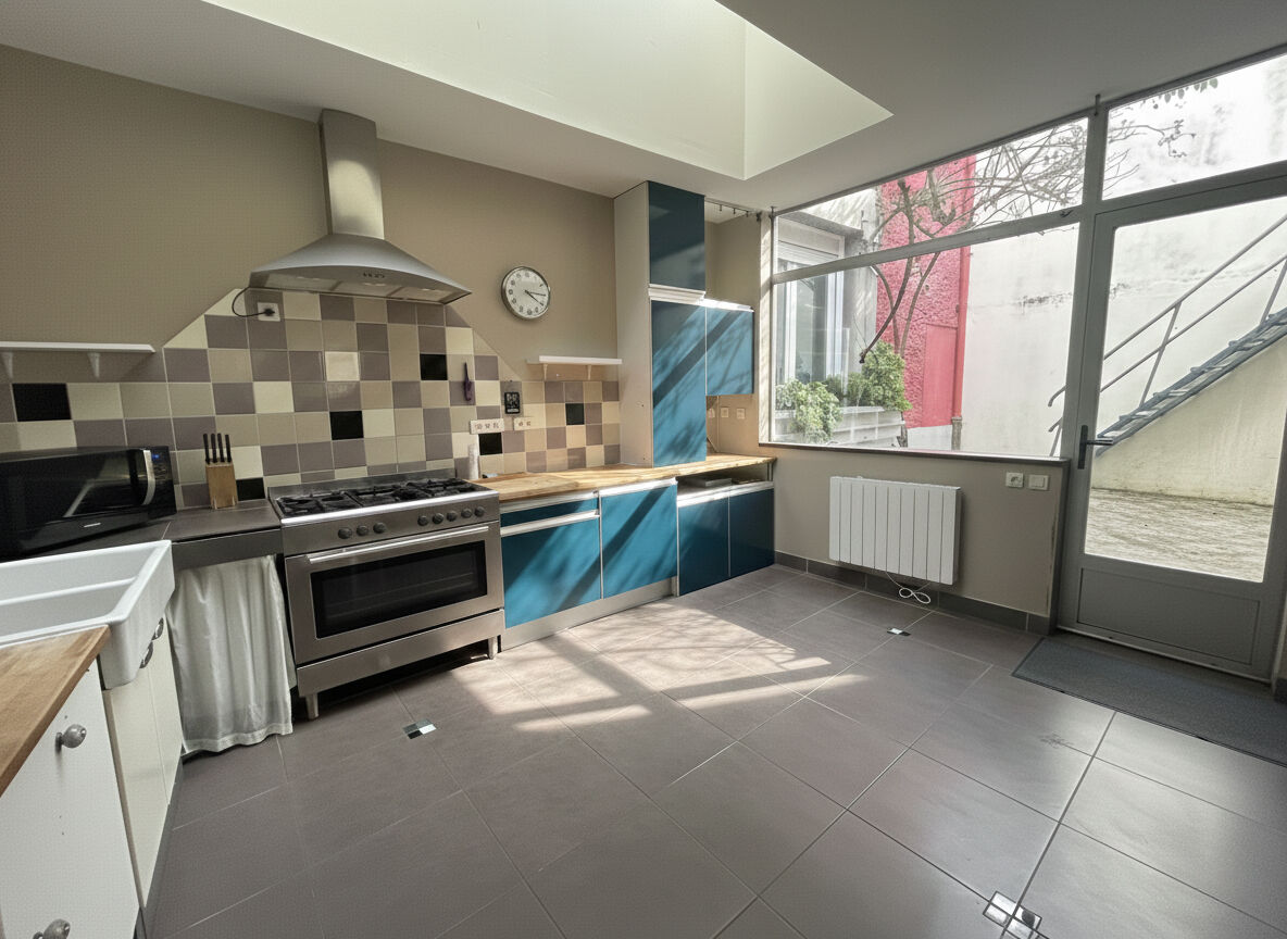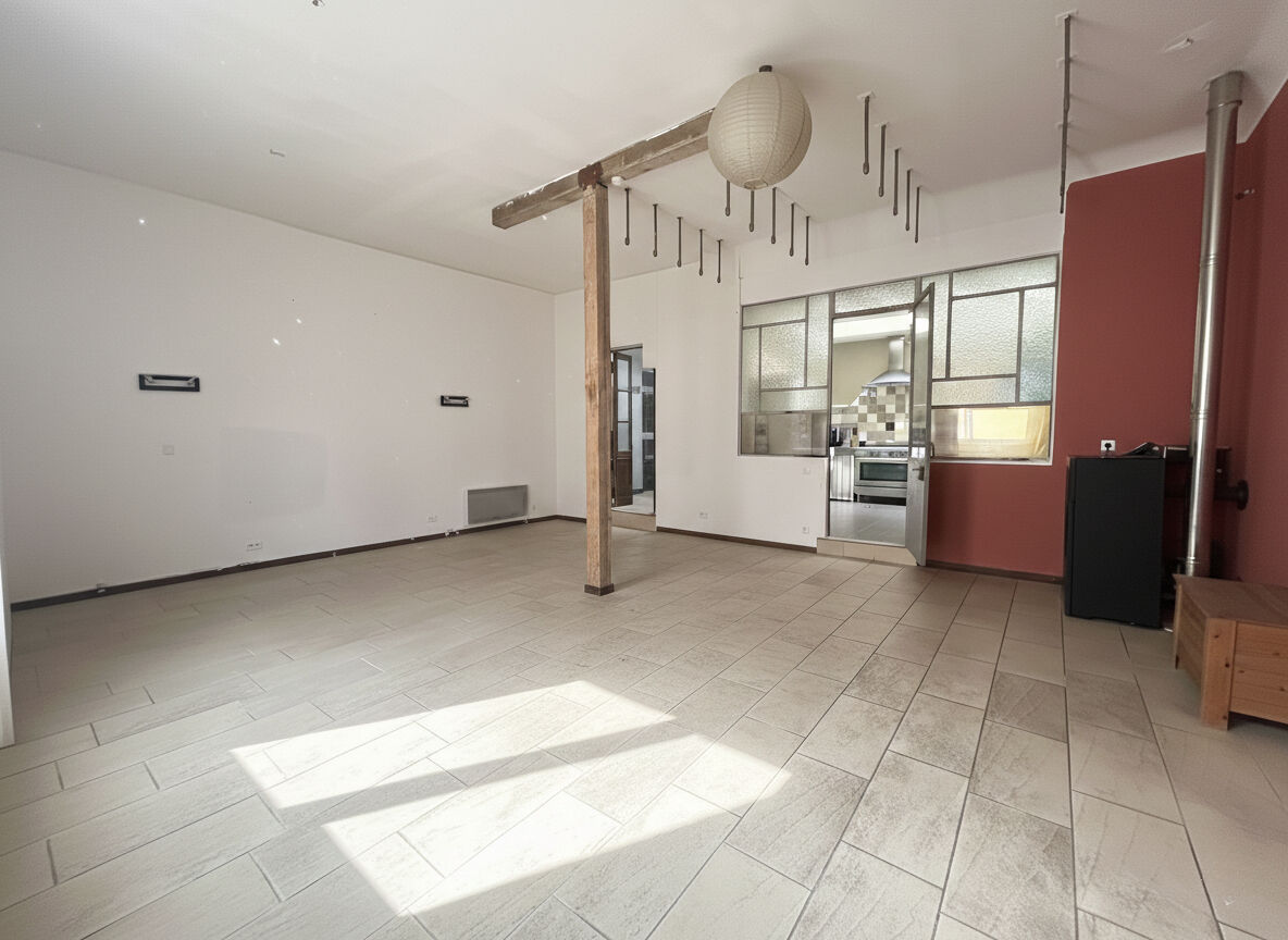 Cette maison pleine de charme propose une belle pièce de vie d'environ 45 m² avec plus de 4 m de hauteur sous plafond dans un esprit loft, apportant volume et luminosité. La grande cuisine aménagée et entièrement équipée donne accès à une cour agréable pour profiter des beaux jours.