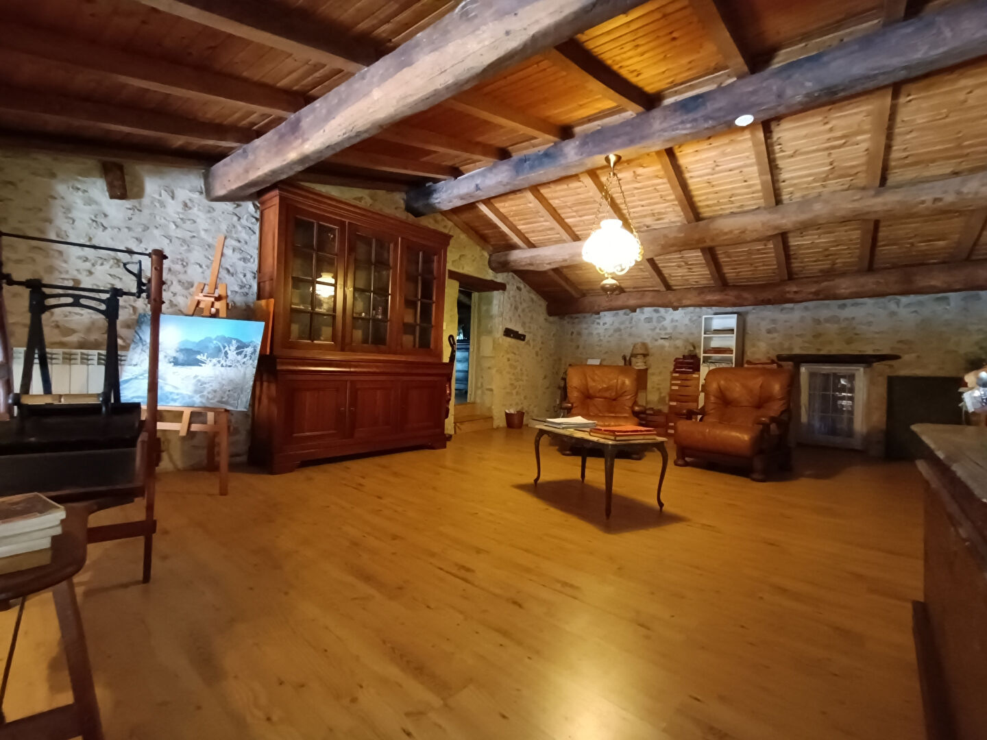 A l'étage: grande mezzanine et chambre de 25m².