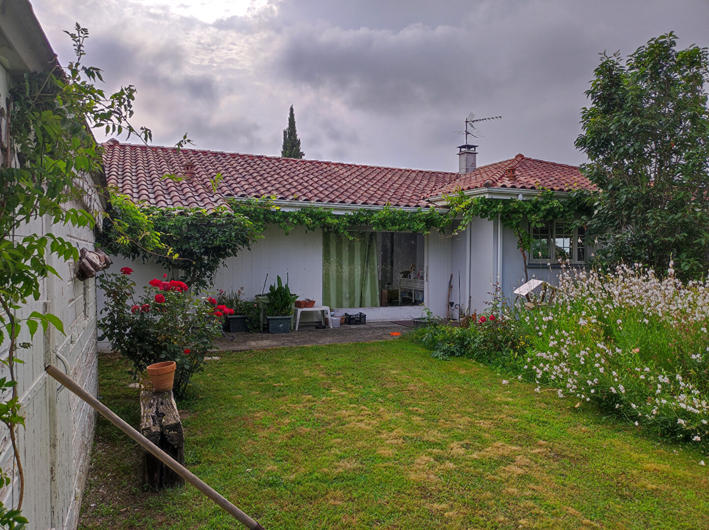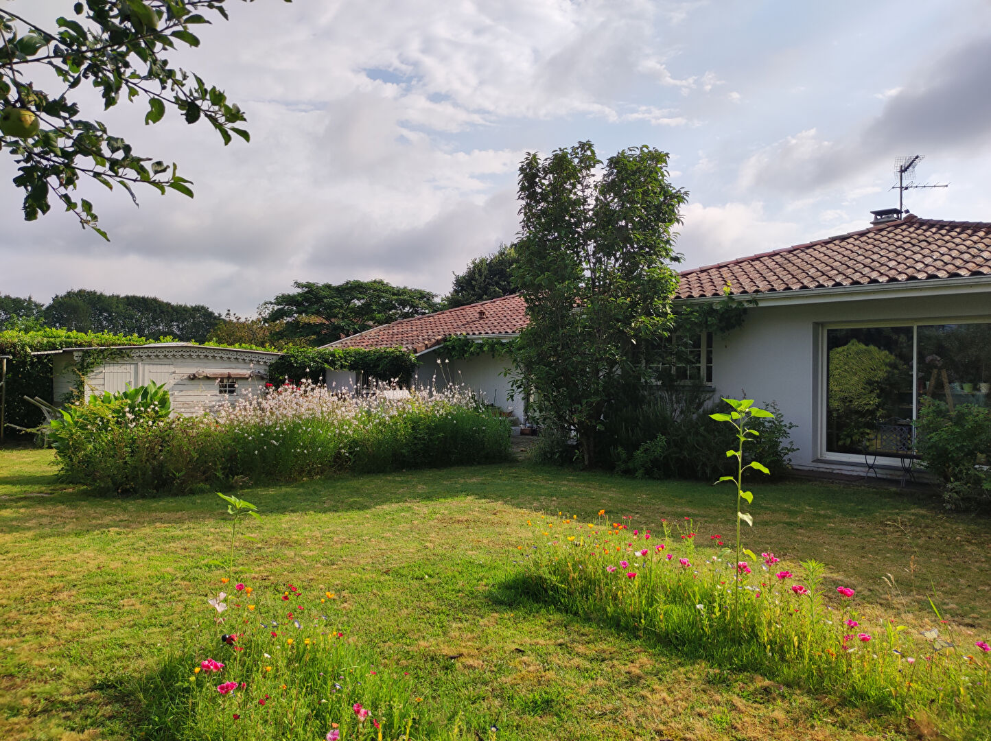 Proximité de Saint Paiul Les Dax, belle maison de plain-pied, pièce principale 65 m2, avec poêle à bois, très lumineuse, cuisine ouverte sur espace repas, 3 chambres, un bureau, des espaces tres confortables offrant de la lumière et des volumes.