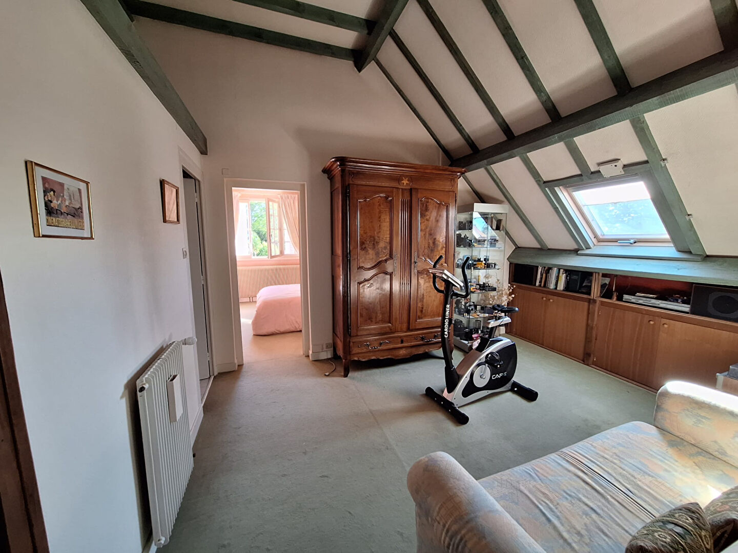 Vous trouverez deux chambres supplémentaires, une mezzanine pouvant faire office de bureau ou d'espace détente, une salle d'eau avec WC, ainsi que deux greniers offrant des possibilités de rangement.