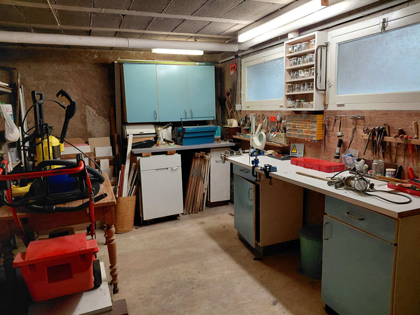 Comprenant une cave, un atelier avec deux chaudières, un cellier et un garage spacieux pouvant accueillir deux véhicules.