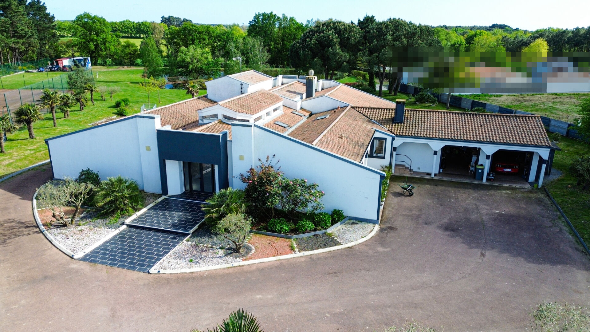 Le vaste parc arboré, soigneusement entretenu, avec son étang et ses espaces de détente, offre une qualité de vie rare, propice au repos comme à la vie de famille active.