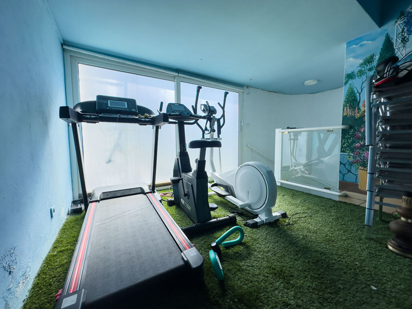 Une salle de sport, une cave au sous-sol,
