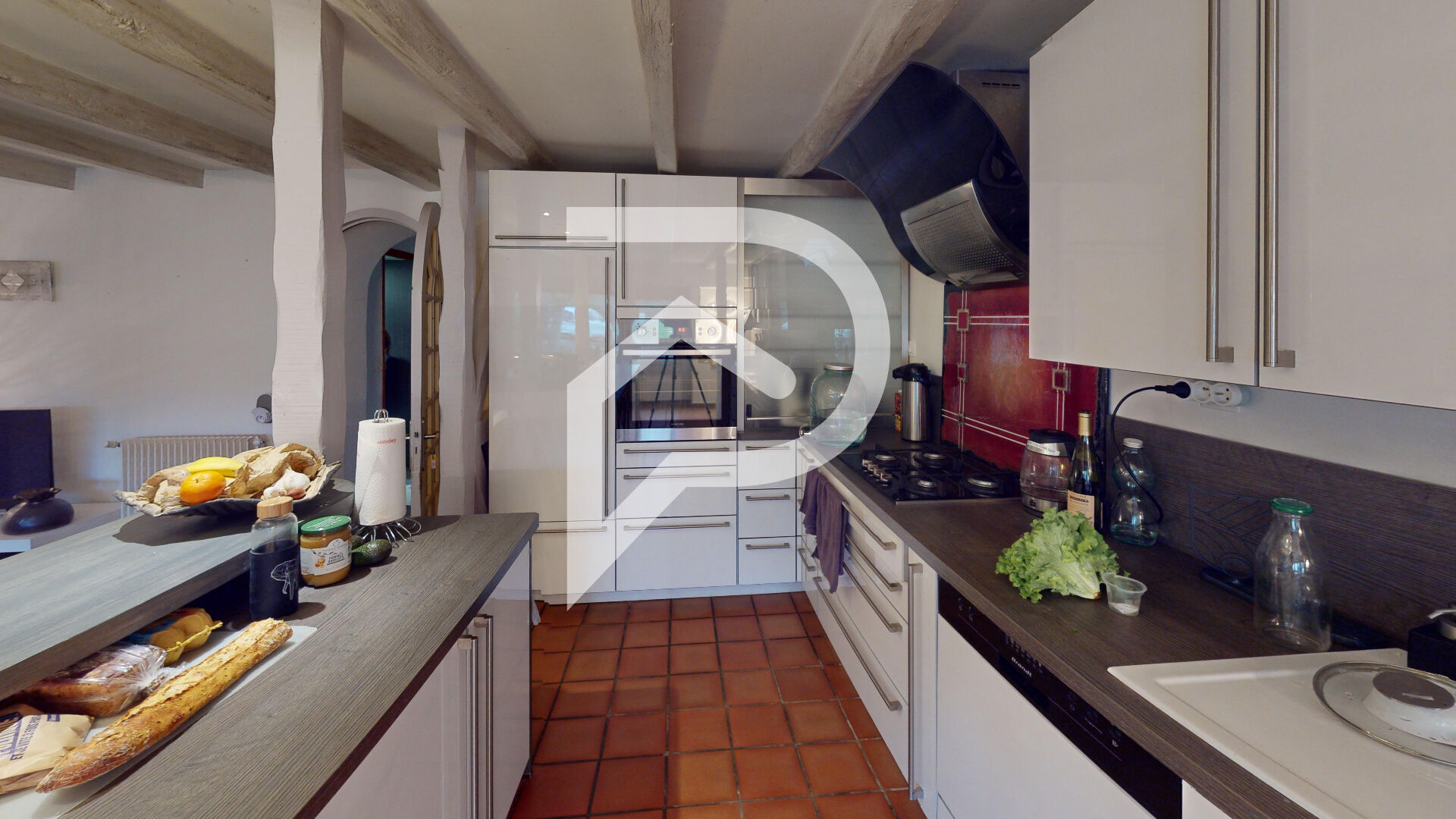Charme de l'ancien : poutres apparentes, murs en pierre, belle cheminée...