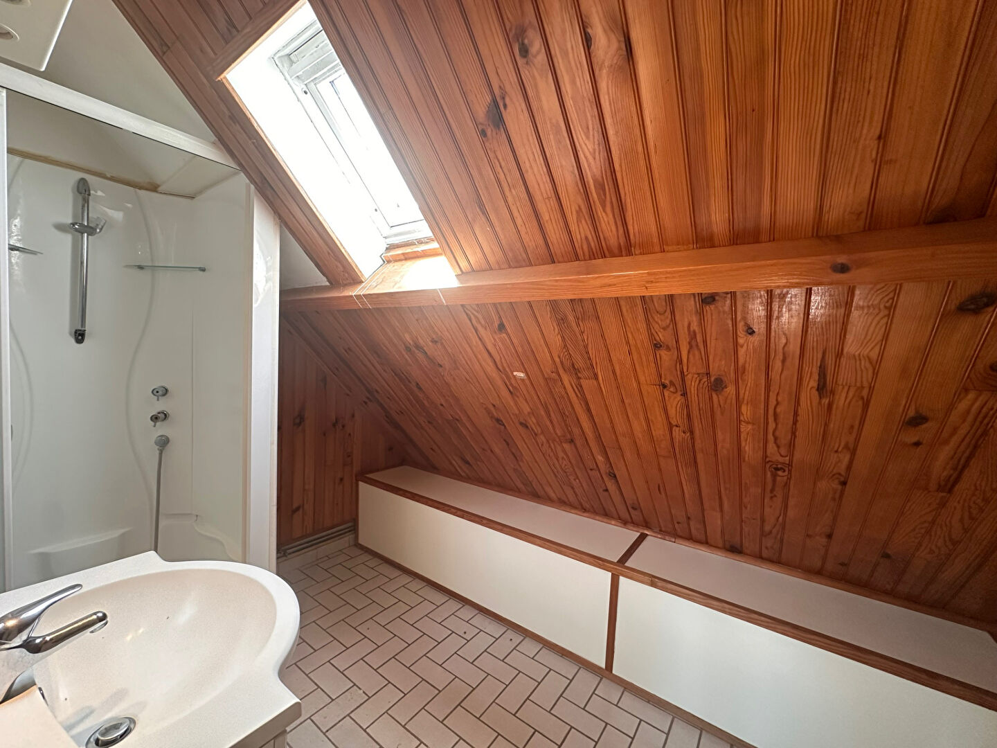 A l'étage : 2 grandes chambres, une salle d'eau avec WC.
