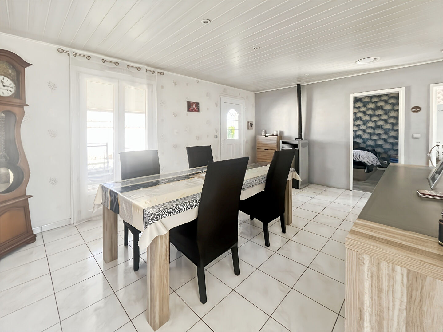 Cette maison de plain-pied, remise au goût du jour, est située dans un environnement résidentiel paisible. Elle offre une distribution fonctionnelle comprenant une pièce de vie avec salon et espace repas, une cuisine indépendante, trois chambres, un bureau, une salle d'eau, des WC séparés ainsi qu'un espace buanderie.
